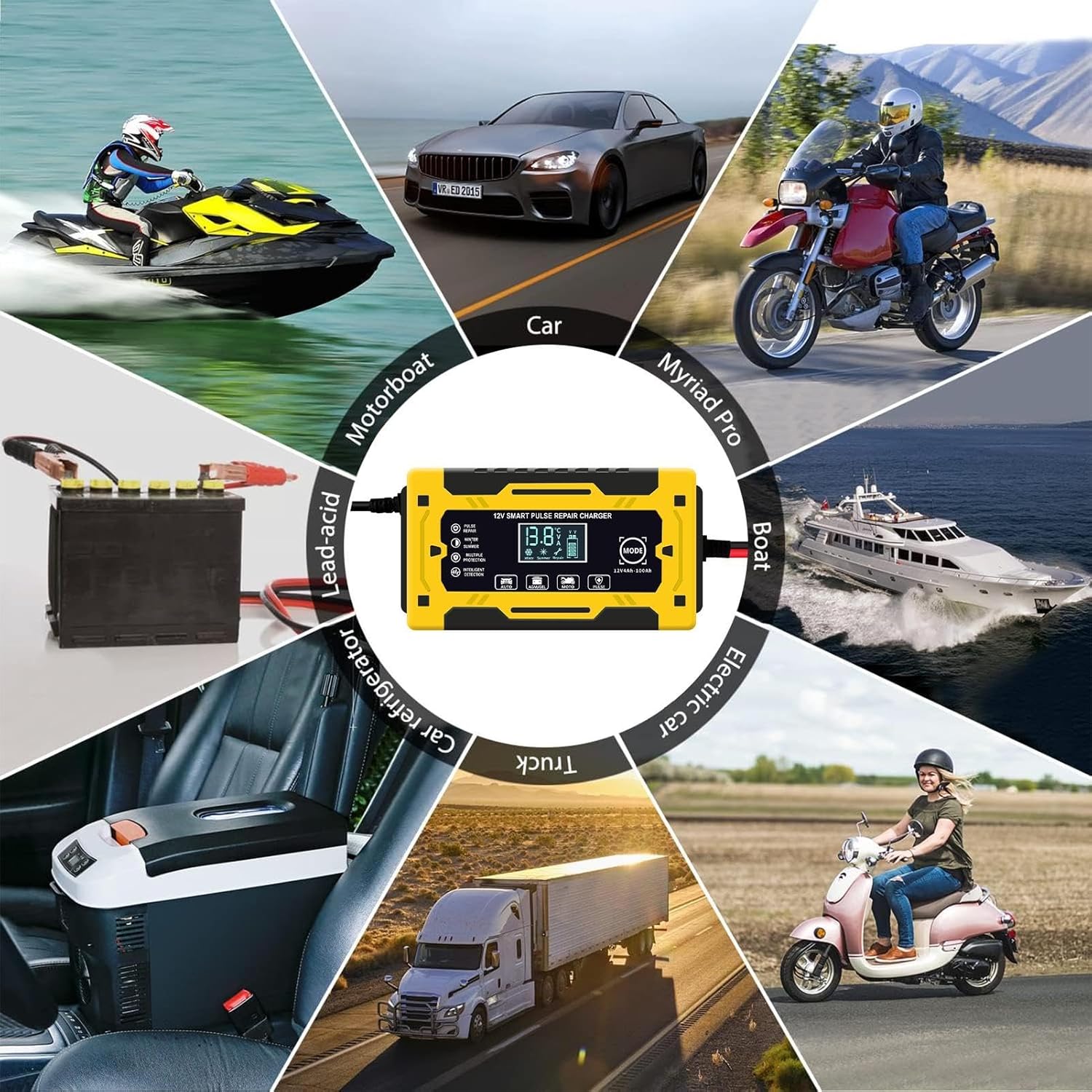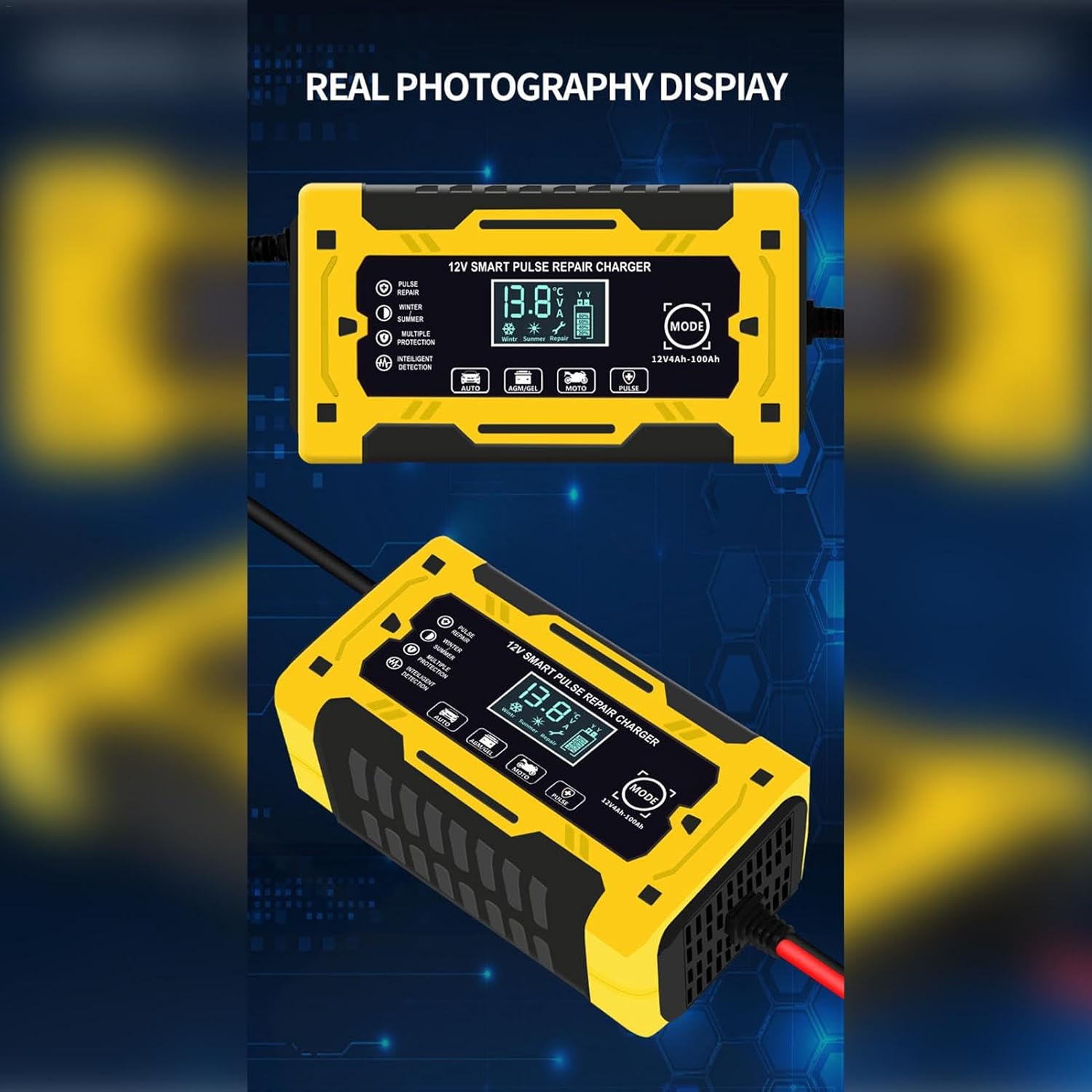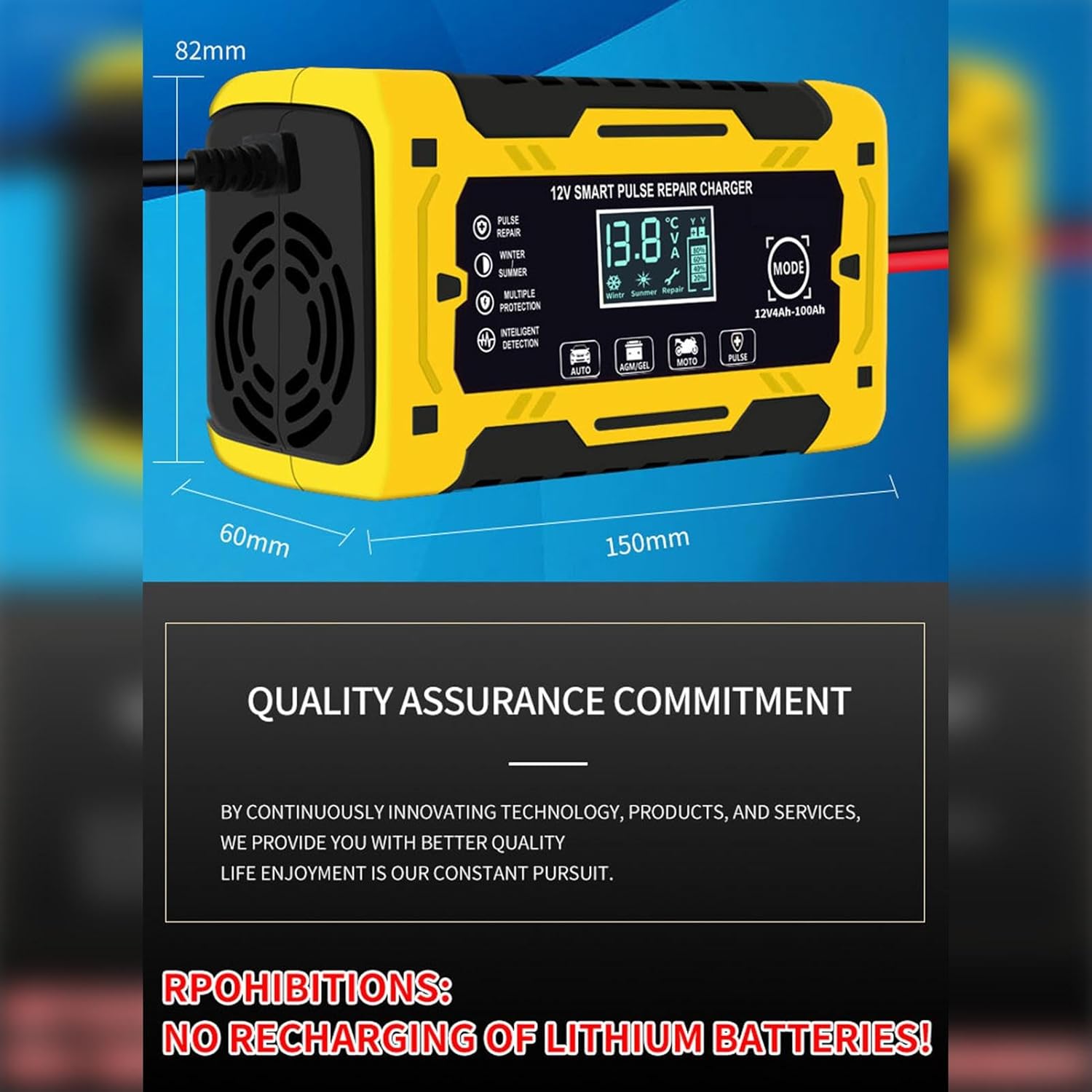Solución de cargador revitalize: equipado con tecnología inteligente de reparación de pulsos, nuestro cargador de batería de coche prolonga eficazmente la vida útil de las baterías de plomo-ácido y asegura su carga y mantenimiento eficientes.