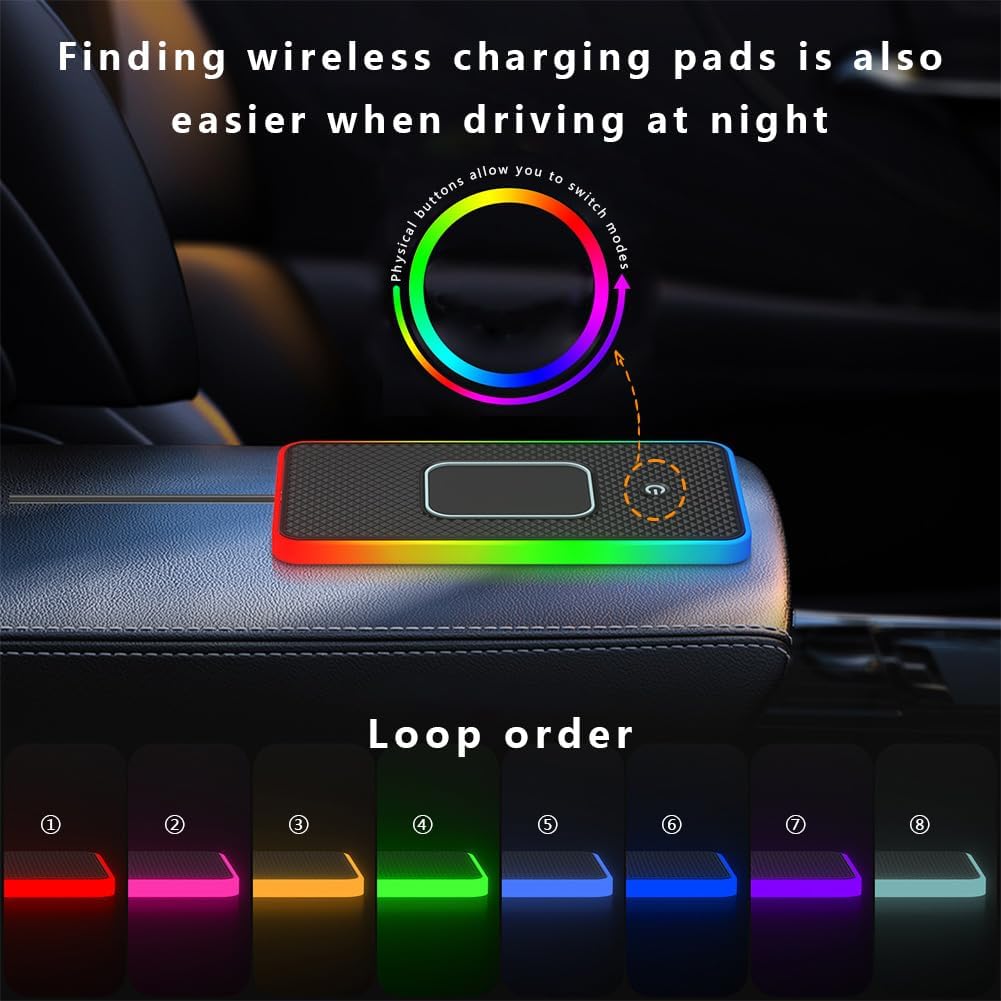 【Añade Ambiente】: Compacta y con un diseño atractivo, le da un toque moderno y elegante a tu coche. Incluso de noche puedes localizar fácilmente la base de carga. Solo coloca el teléfono encima y la carga empieza al instante, sin tener que estar conectando y desconectando cables todo el tiempo.