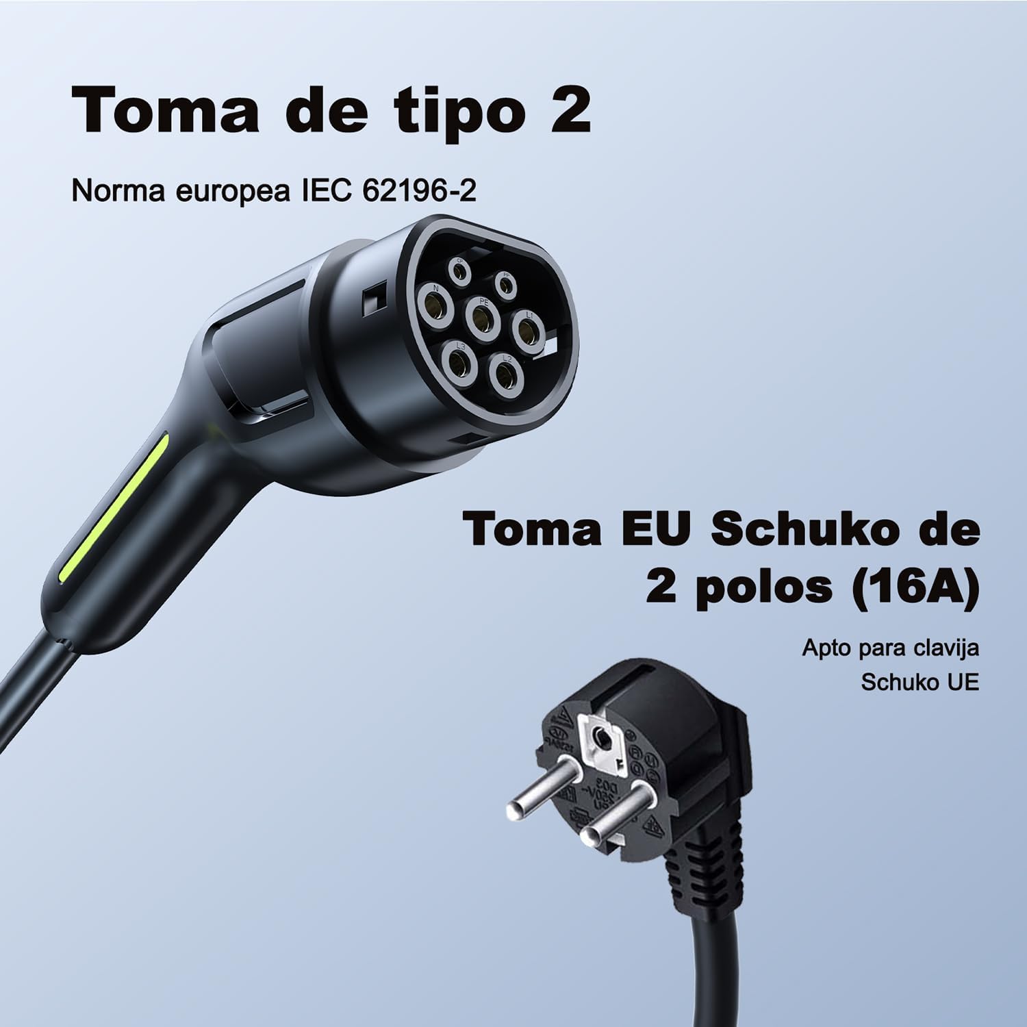 Compatible with most European electric vehicles: The electric vehicle charger is compatible with type 2 electric vehicles and complies with European standard IEC 62196-2. The VDL POWER portable charger also features a 2-pin EU Schuko plug. Compatible with most electric cars. This charger is compatible with Peugeot, Dacia Spring, Tesla, Fiat, Renault, MG4, Volvo, BMW, etc.