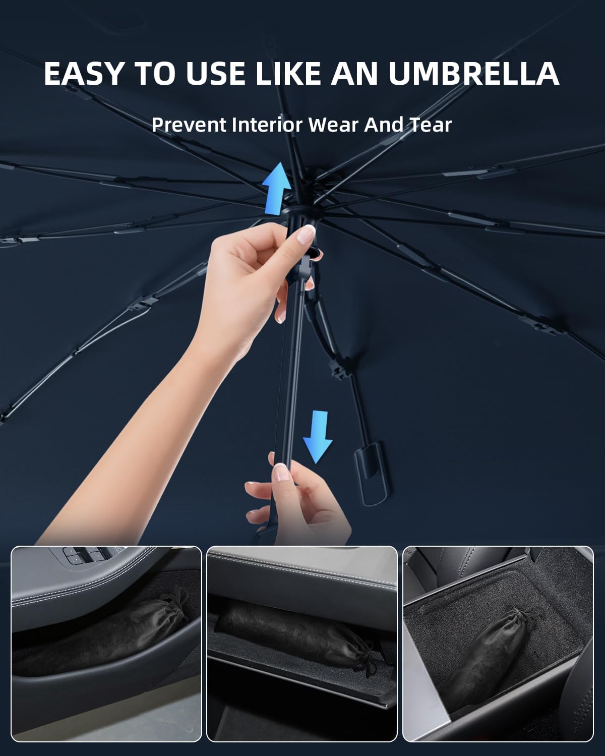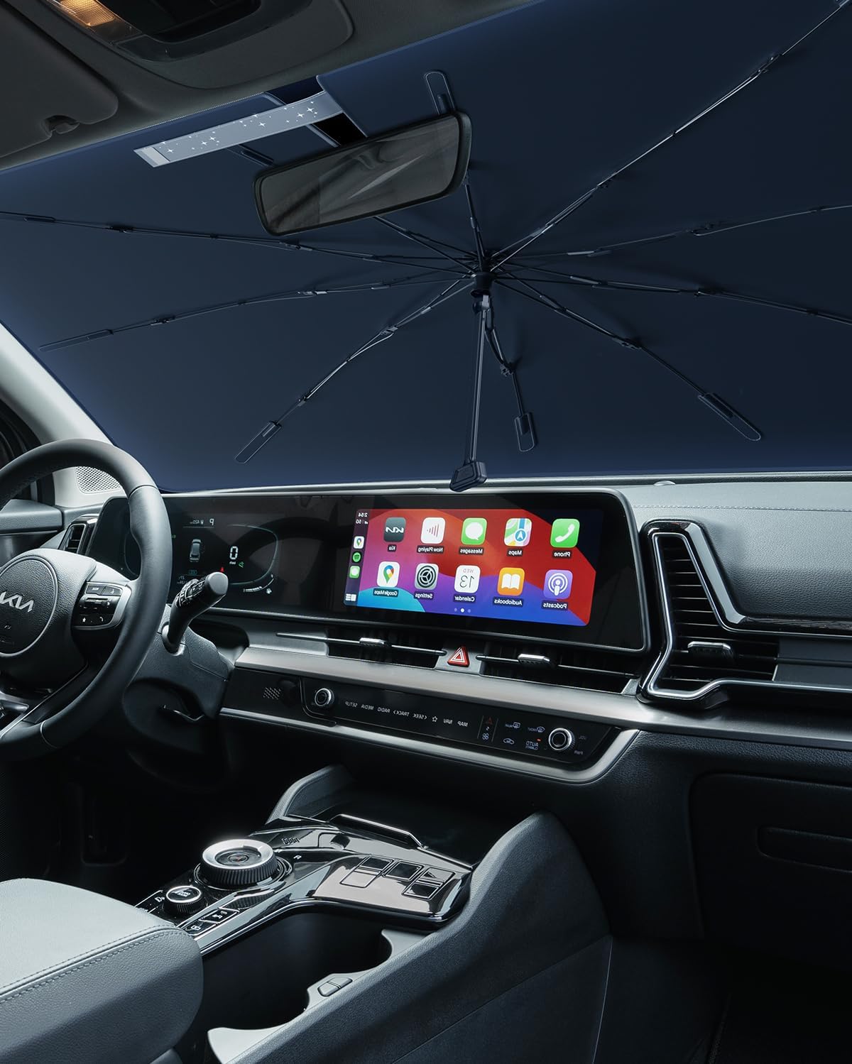 【Easy to Install & Store】- Kia Sportage NQ5 sun shade can be opened and closed like an umbrella, you can fold the sunshade into the storage bag in seconds and store the sunshade in the glove box or under the seat or in the trunk