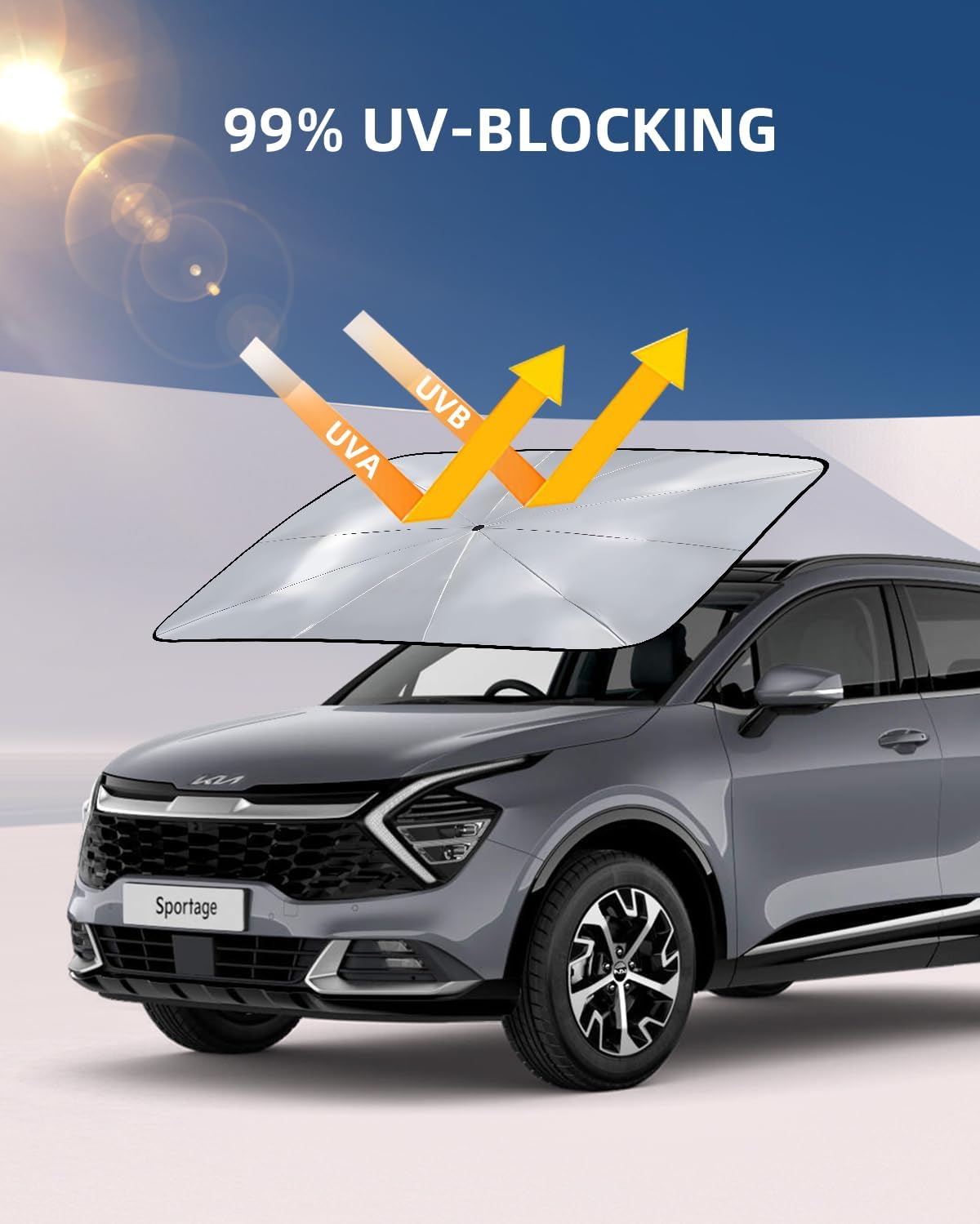 Folding Sun Shade for Kia Sportage 2025 2024 2023 2022, Front Windshield Sunshade for Sportage NQ5, Sun Shade Accessories Heat Blocker UV Protection