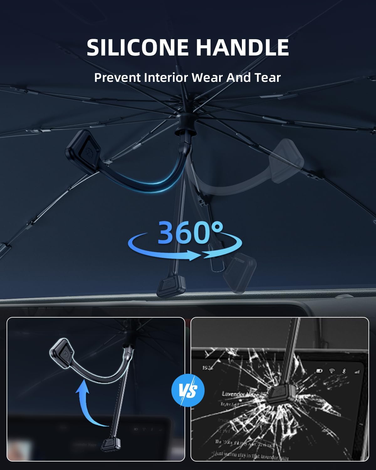 【Silicone Handle for Gentle Care of the Center Screen】- LANGBEAN sun visor equipped with a soft silicone handle, which effectively prevents wear and tear of the interior of the center console when frequently opening the sun visor