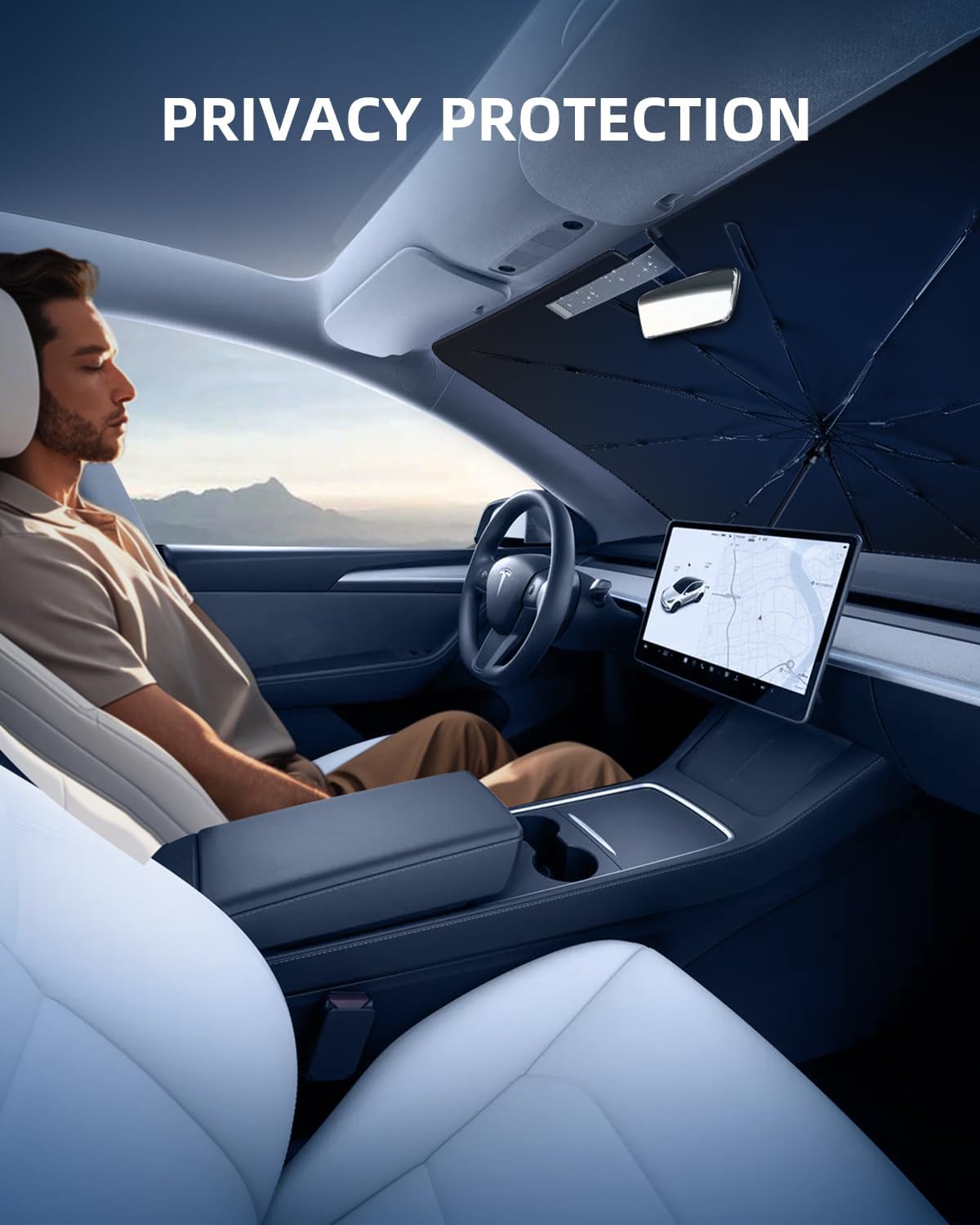 【REAR VIEW MIRROR CUT FOR FULL COVERAGE】- Opening reserved for the rearview mirror, does not block the tachograph, while the ETC can also be used normally. The most important thing is that there is no light leakage
