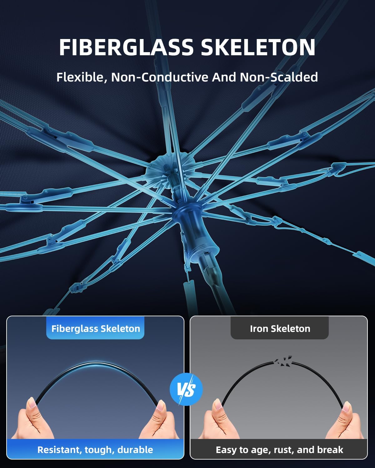 【High Quality】- With more wrinkle-resistant fabric, improve user experience; Fiberglass skeleton, 2 times more durable than iron skeleton, extend the life of the sunshade