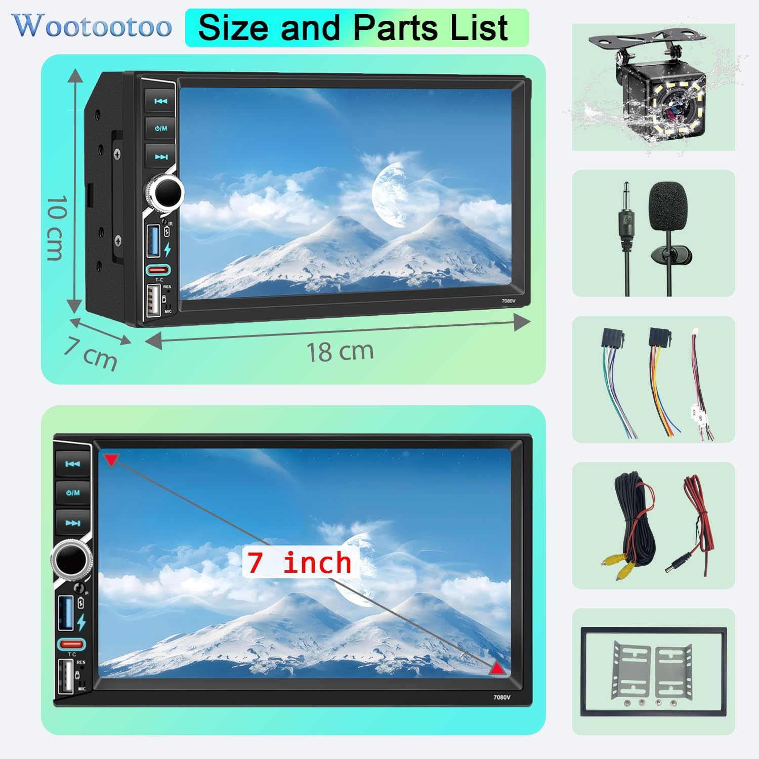Be the first to review “2 DIN Car Stereo Radio with Bluetooth, Wireless CarPlay and Android Auto, 7 Inch HD Touchscreen, FM RDS Radio, Type C, Quick Charge, Microphone and Rear View Camera”