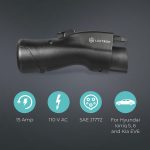 El adaptador Lectron V2L (Vehicle to Load) es compatible con el Hyundai Ioniq 5 y el nuevo Hyundai Ioniq 6 y le permite alimentar sus dispositivos, electrodomésticos y más, utilizando su puerto de cargador J1772. Convierte el puerto de carga de tu Ioniq en una toma de CA estándar, lo que lo hace perfecto para viajes por carretera, campamentos, paseos deportivos y barbacoas. Tiene una salida de 15 amperios para alimentar tus dispositivos. Simplemente conecte el adaptador V2L al puerto de carga de su Hyundai Ioniq 5 o 6, luego conecte el cable de CA al tomacorriente NEMA 5-15 en la parte posterior del adaptador. El adaptador Lectron V2L es compatible con vehículos eléctricos Hyundai Ioniq 5 y 6 que utilizan el enchufe estándar americano J1772 (Nota: no es compatible con otros vehículos eléctricos)