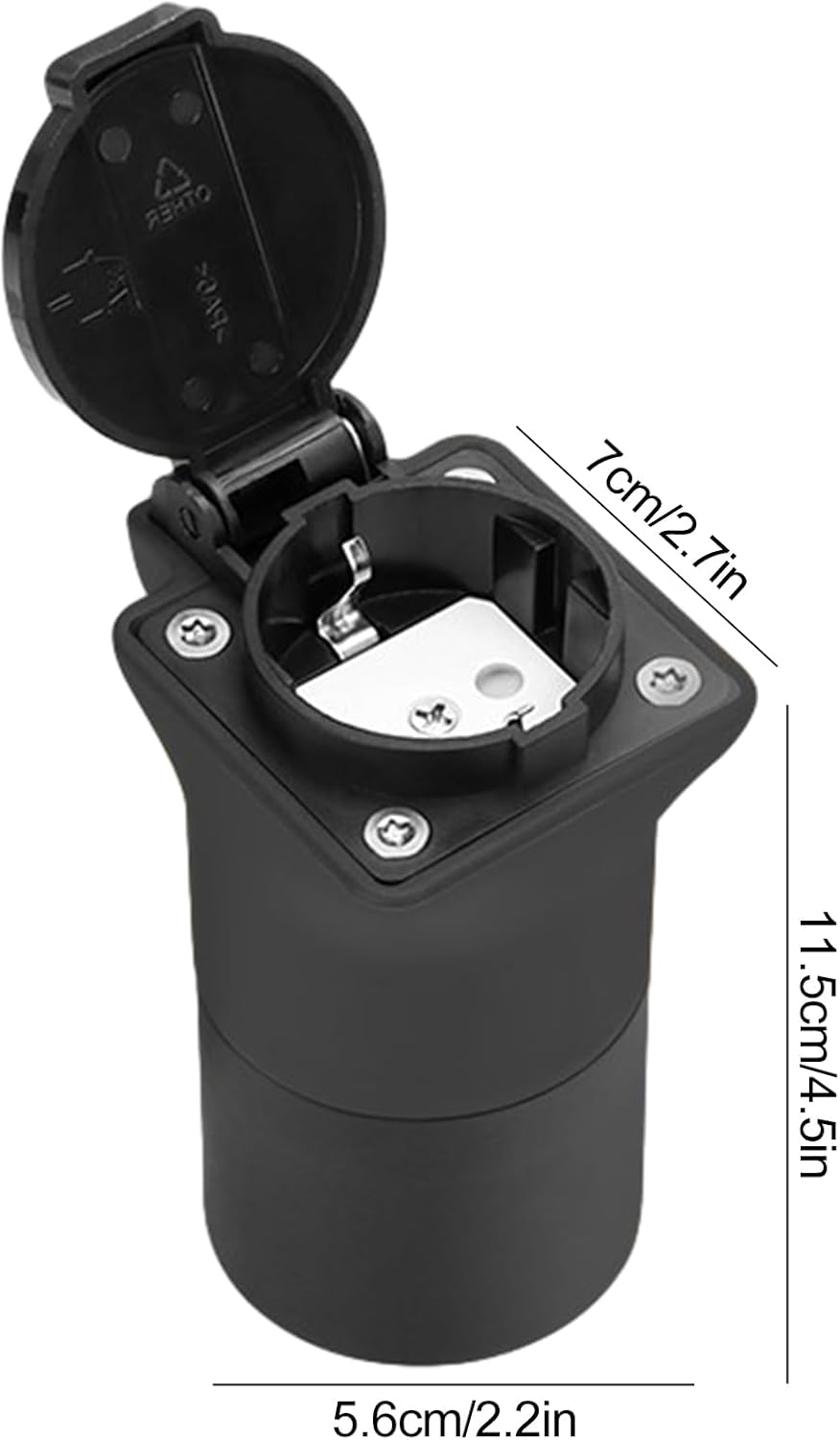 Seguridad y durabilidad de los adaptadores para vehículos: seguridad y durabilidad: el adaptador para vehículos está equipado con un interruptor de protección térmica. Los pasadores internos están fabricados con materiales de aleación de cobre y plata para una larga vida útil, con una vida mecánica de 20.000 ciclos. Es ignífugo según UL94 V-0 e impermeable IP54 y tiene una cubierta antipolvo para mantener alejado el polvo.