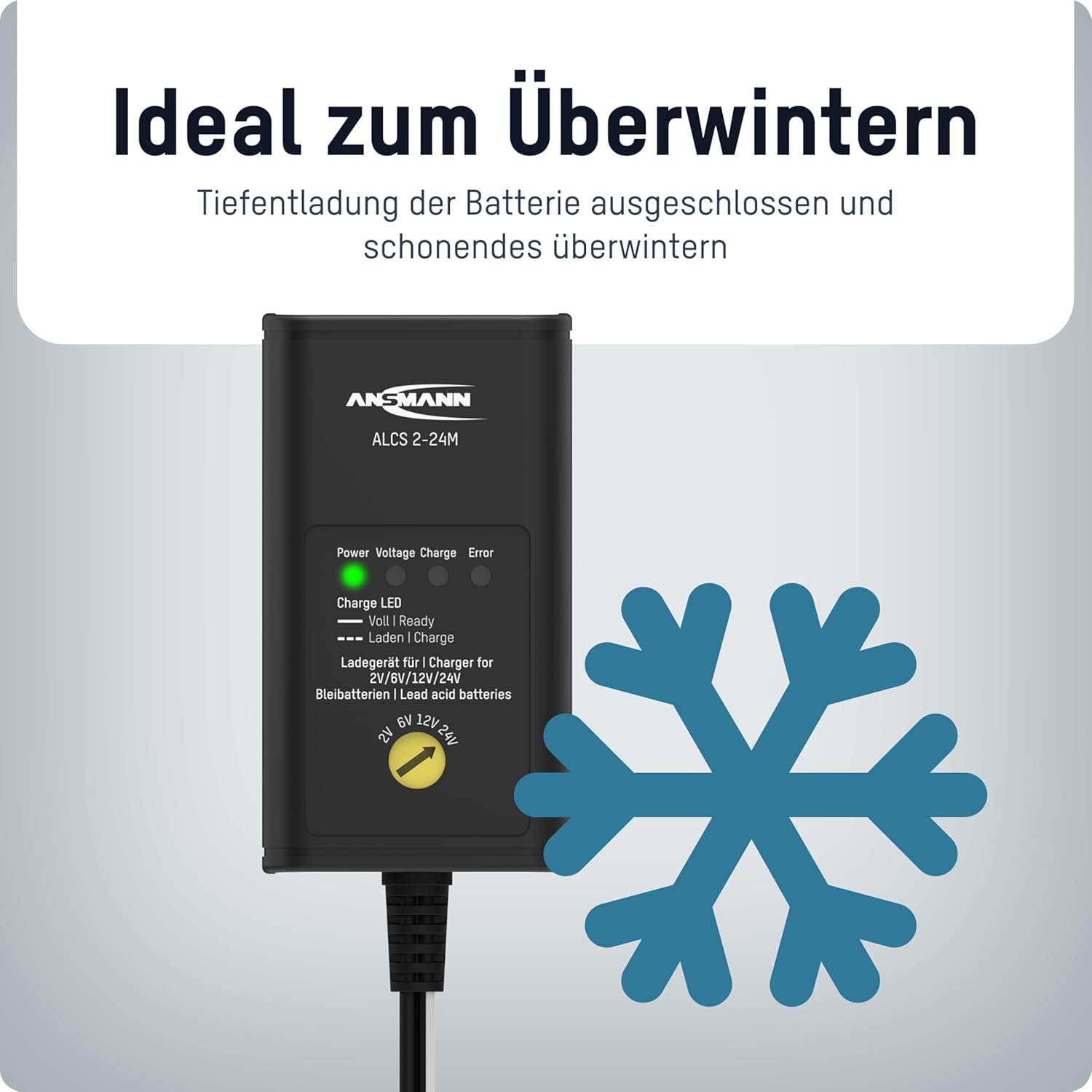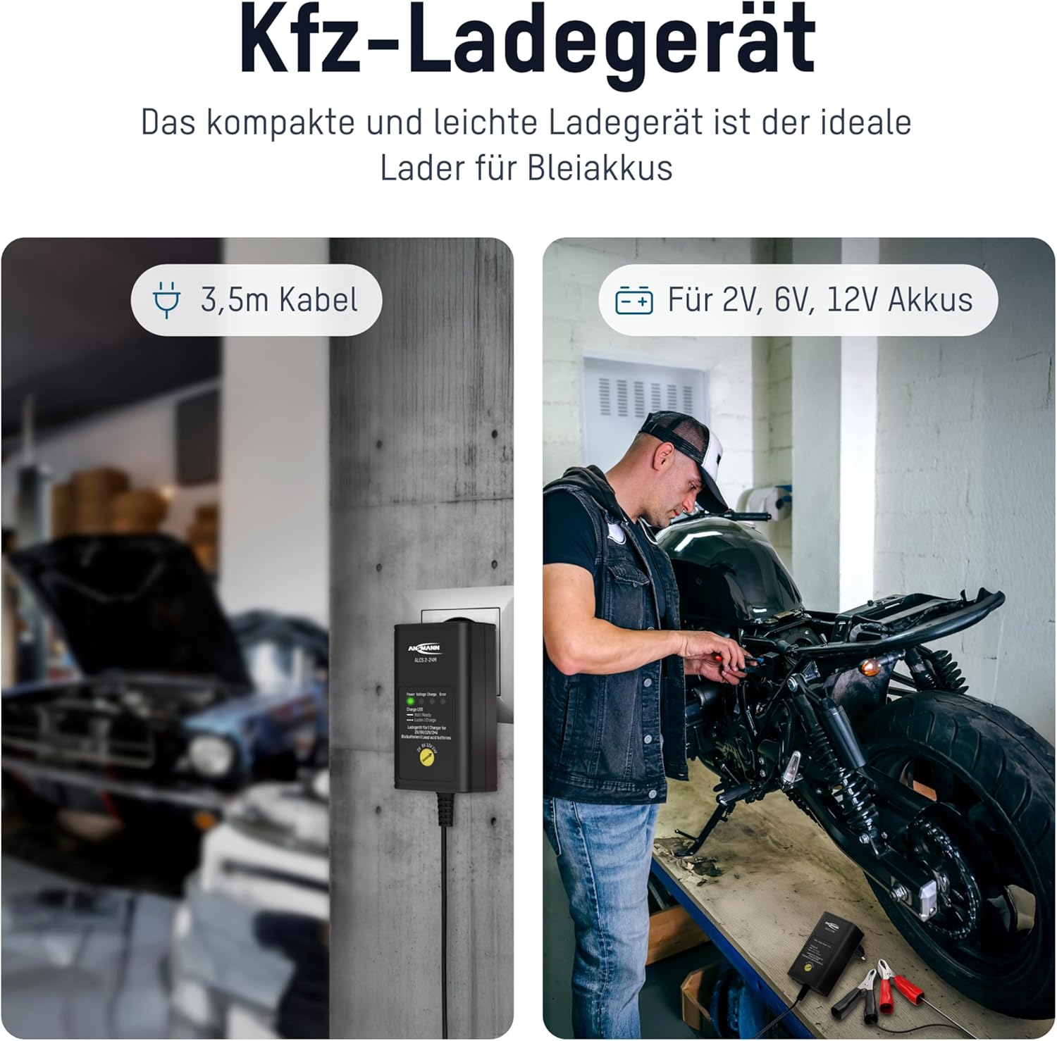 Ansmann 1001-0015 – Cargador de Vehículo ALCS 2-12 para Automóviles, Motos, Motos, Baterías Plomo-Gel 12V 6V 2V
