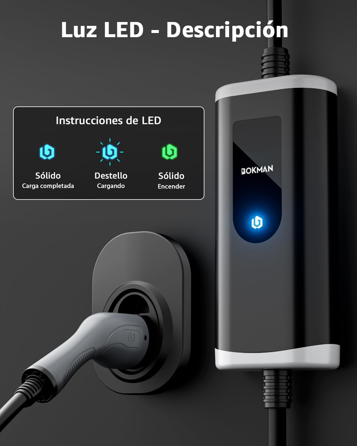 bokman Cargador de Coche Eléctrico Tipo 2, 3,68 kW/16 A/5 Metros/IP65 Resistente al Agua, Cable de Carga monofásico para vehículos eléctricos