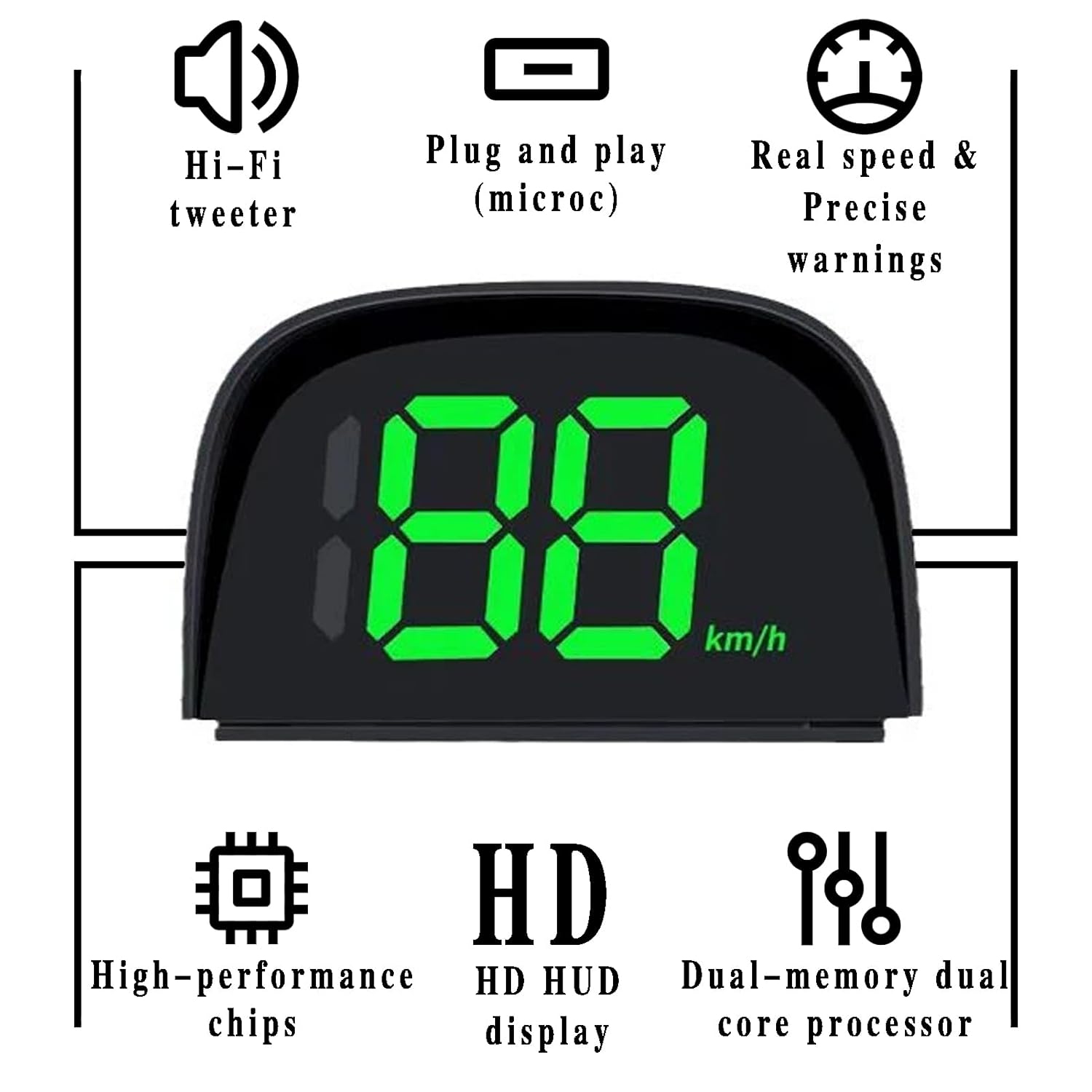 Optimum readability day and night with HUD display: the large LED display of the digital speedometer offers perfect viewing in any light condition. The front view function allows the speed to stay directly in the field of view without taking your eyes off the road. Whether in bright sunlight or in the dark, the screen always remains clear, contrasting and anti-glare for a safe driving experience at all times.