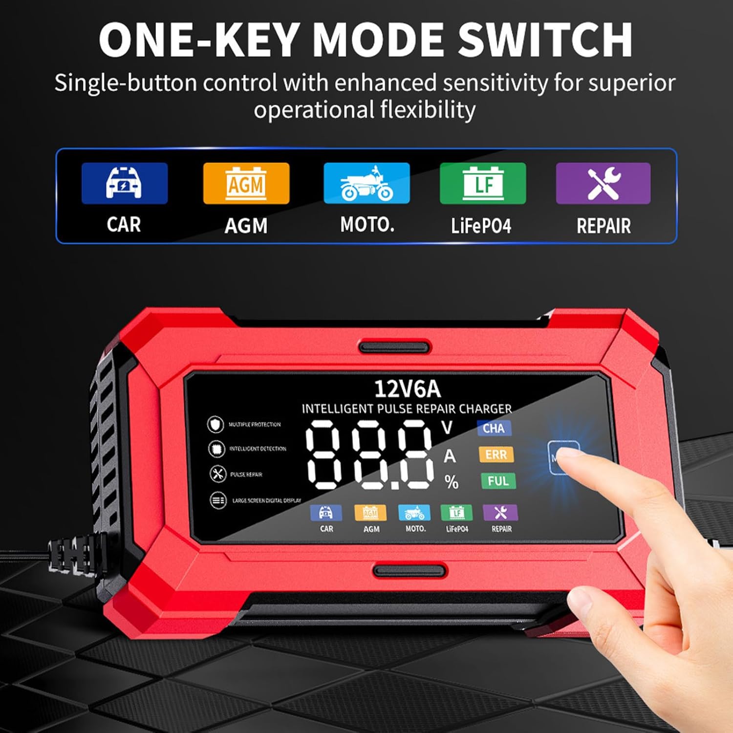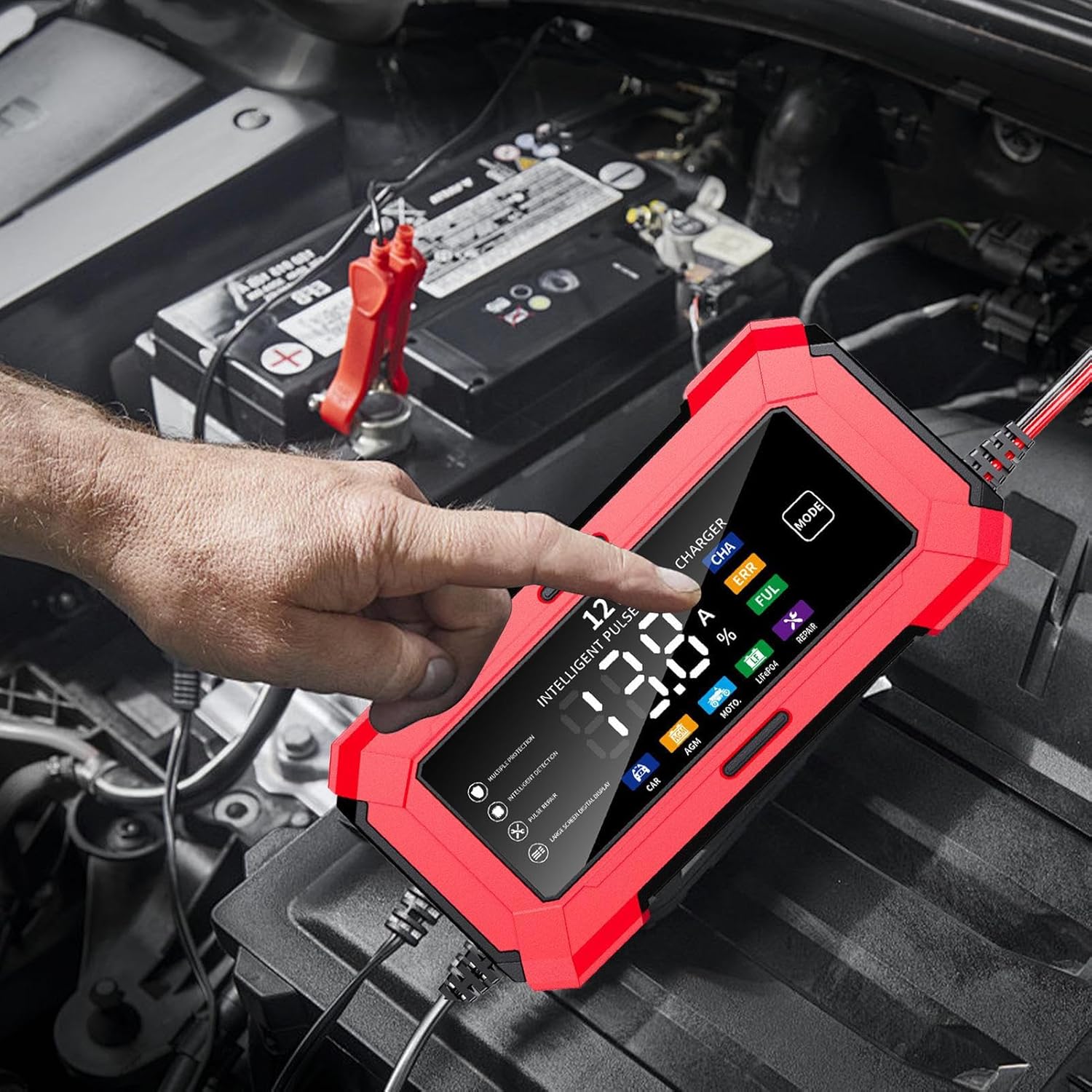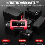 Seguridad Mejorada: Detecta polaridad incorrecta, alerta de conexión inversa y corte automático protegen la batería durante la carga sin complicaciones.