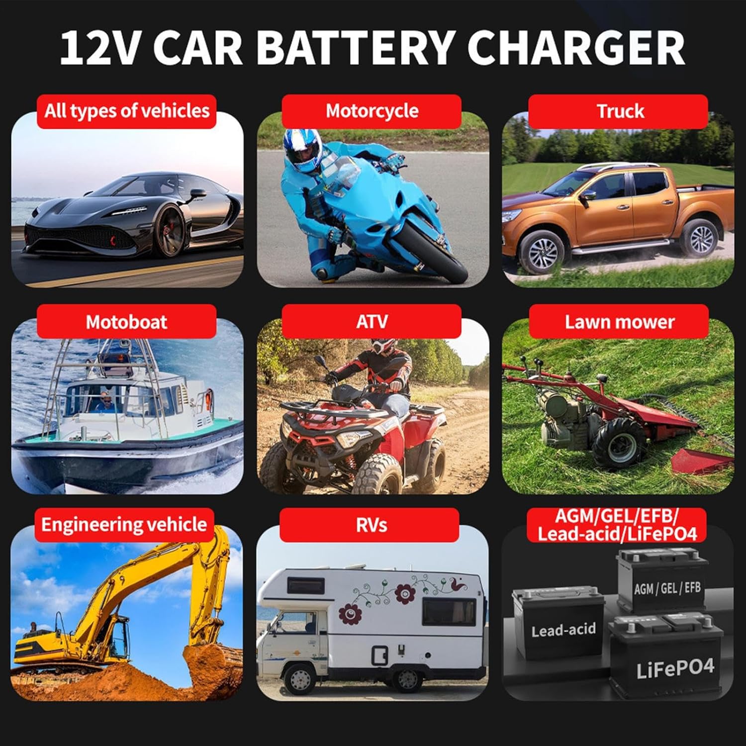 Cargador De Batería Automotriz – Cargador De Mantenimiento Lento 12v para Automóvil | Carga Rápida Mantenedor Automotriz para Viajes Marino Cuidado Diario Viajes por Carretera Moto Camión
