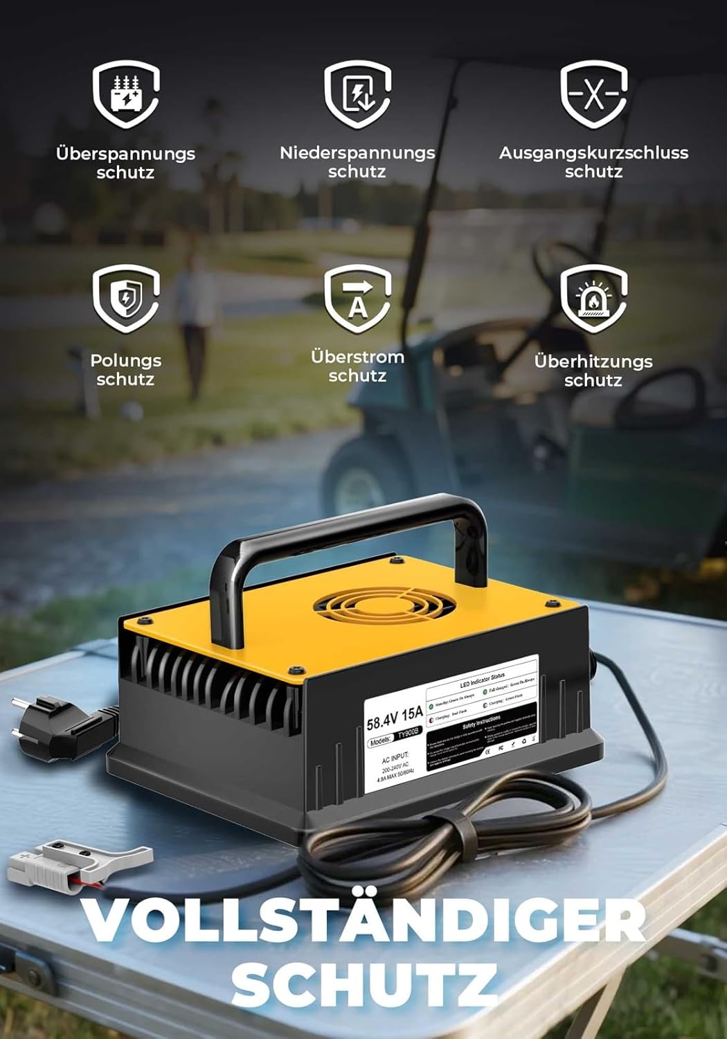 【Función de protección inteligente】El cargador de batería LiFePO4 48V 15A cuenta con múltiples protecciones de carga, incluyendo protección contra bajo voltaje, protección contra sobrevoltaje, protección contra sobrecorriente, protección contra sobrecalentamiento, protección contra cortocircuitos de salida, protección de conexión de polaridad inversa, etc.