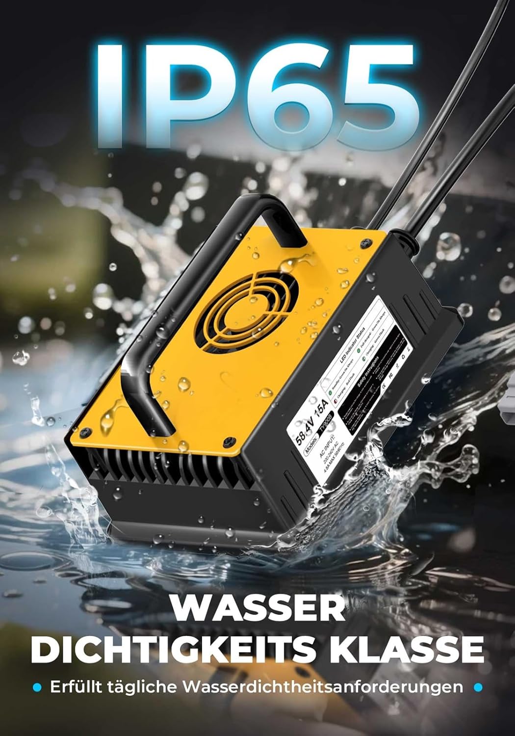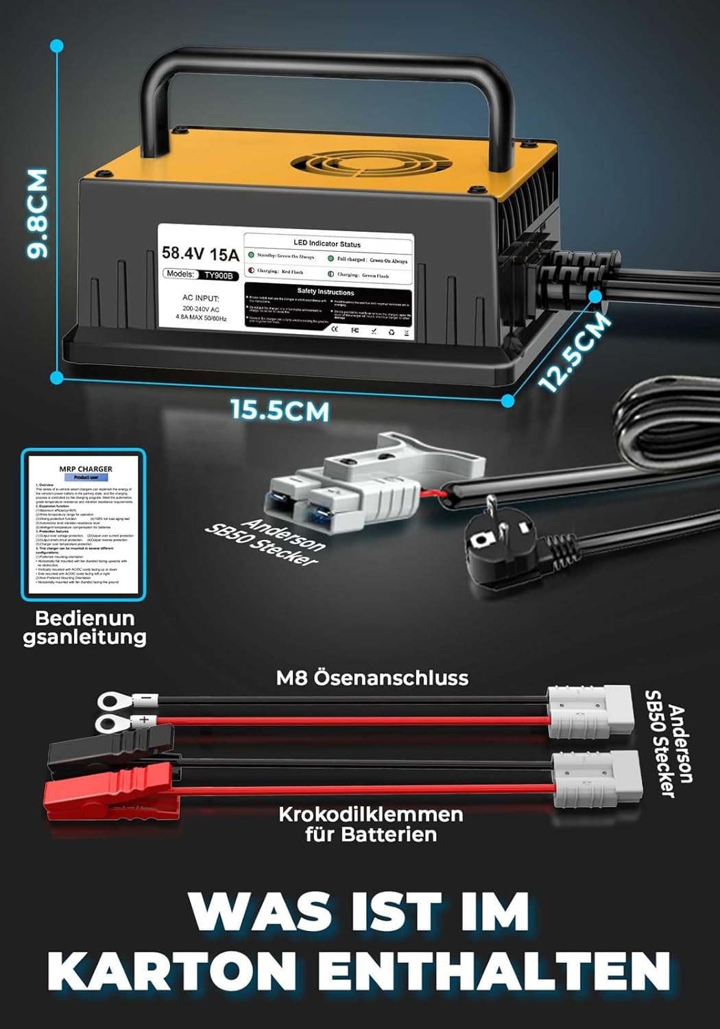 Cargador de batería de litio LiFePO4 de 58,4 V 15 A, LiFePO4 automático, adecuado para baterías de litio de 48 V (51,2 V)