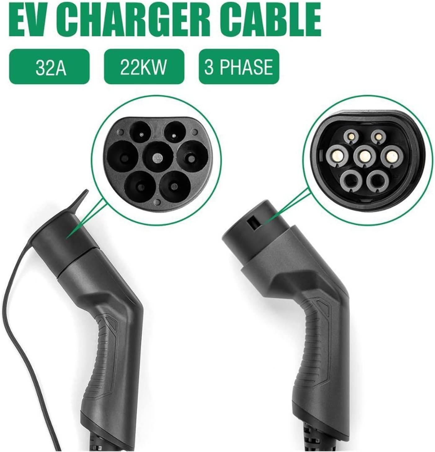 Cargador de coche eléctrico Cable de carga para cargador de coche 16A/ 32A EV 1 fase/ 3 fases EVSE vehículo eléctrico tipo 2 hembra a macho 62196 enchufe 5M cargador portátil para vehículos eléctricos(