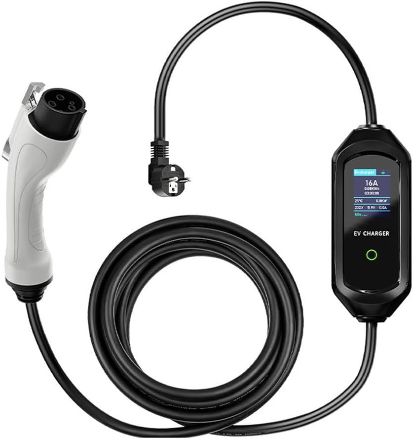 Este Cargador para Vehículo Eléctrico es un equipo portátil de suministro de energía para vehículos eléctricos, diseñado para cargarlos desde una toma de corriente doméstica estándar. Su potencia nominal de 3,6 Kw y su consumo de corriente de 16 A son sus características distintivas. Equipado con una pantalla OLED, el cargador muestra los datos de carga y se apaga automáticamente. Ligero y robusto, ideal para llevar mientras viaja.