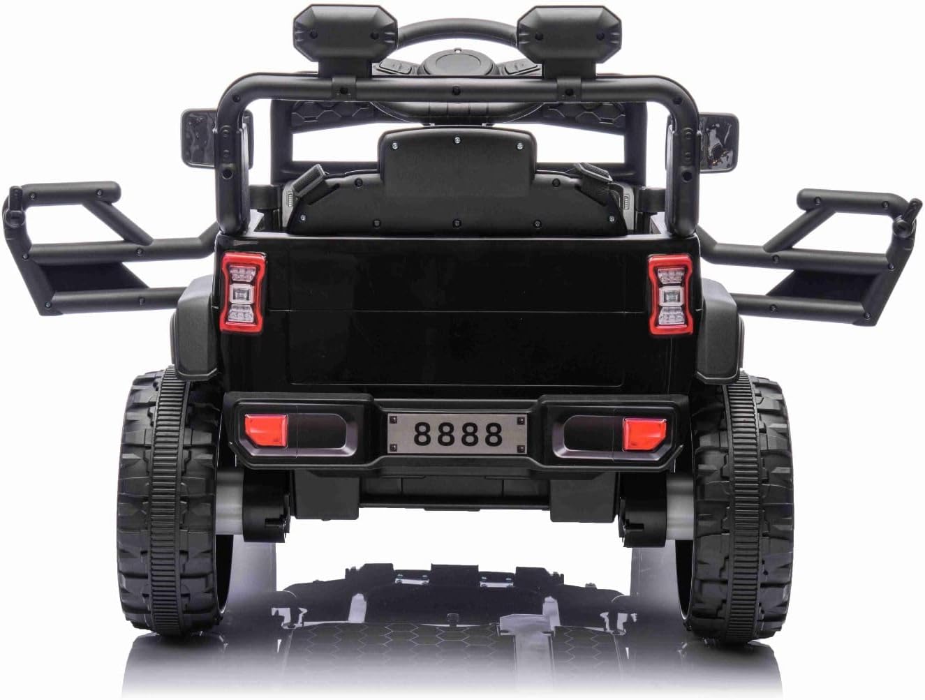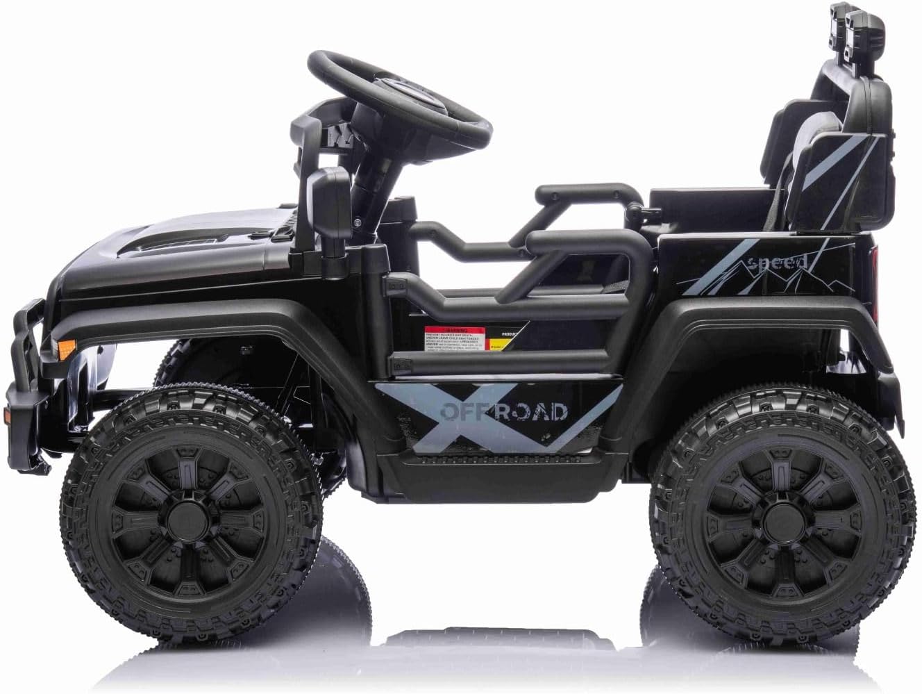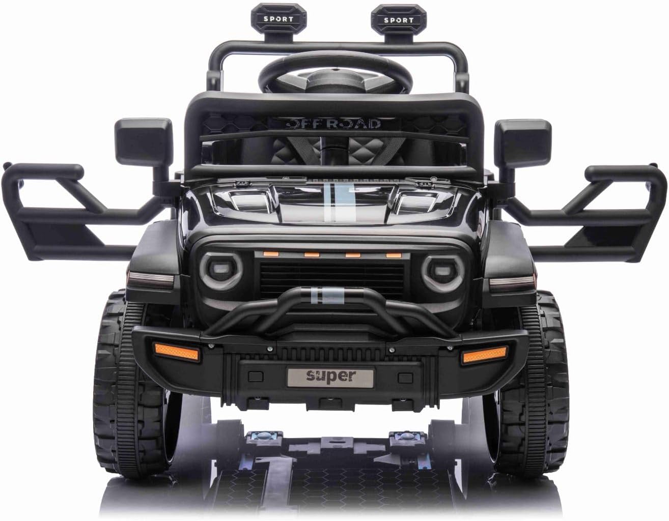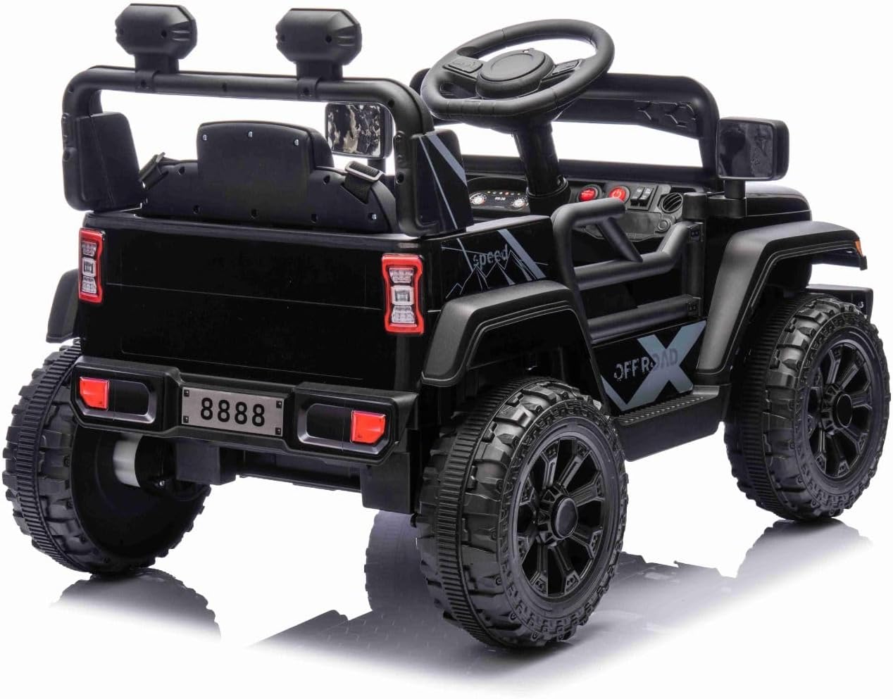 Coche eléctrico para niños OFFROAD NEW con tracción trasera, negro, batería de litio, chasis alto, suspensión trasera, reproductor MP3 con USB/AUX