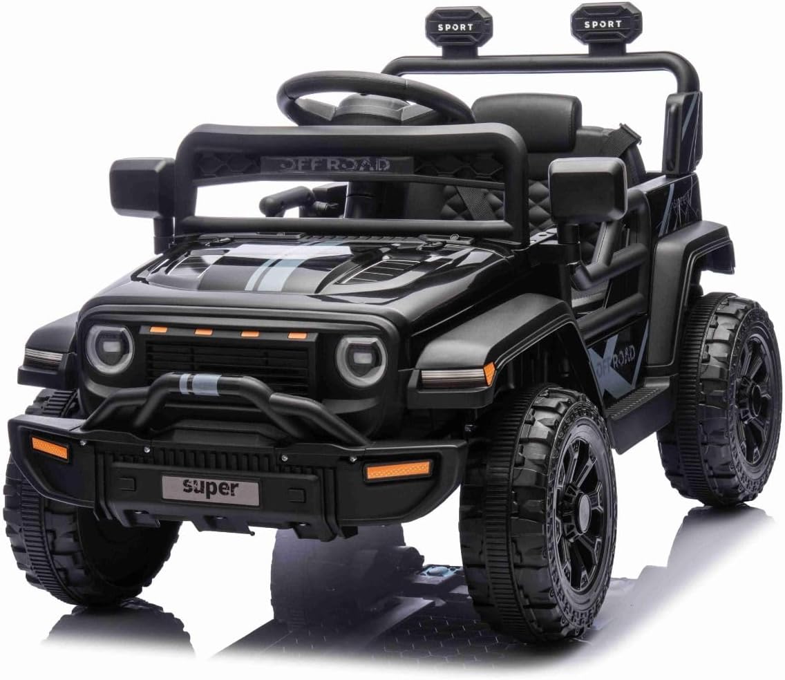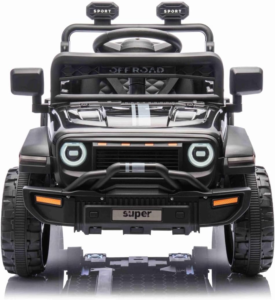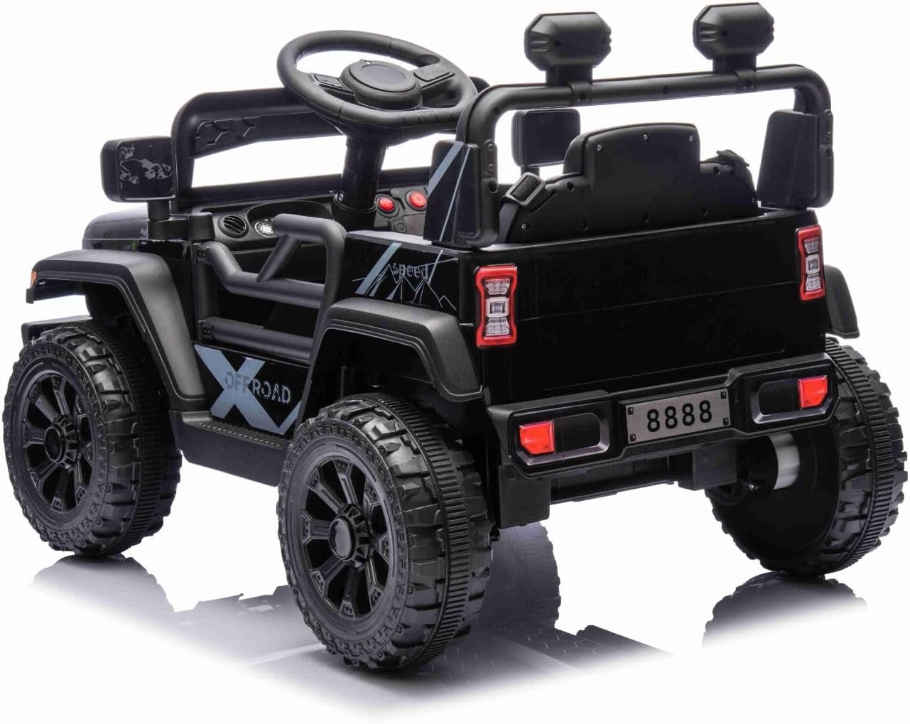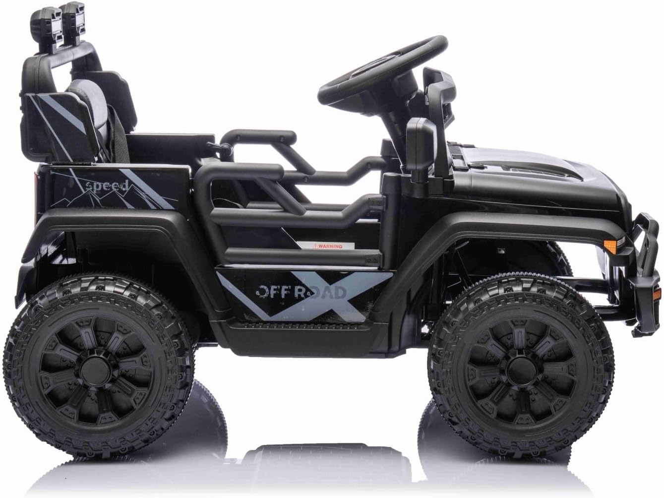 Coche eléctrico para niños OFFROAD NEW con tracción trasera, negro, batería de litio, chasis alto, suspensión trasera, reproductor MP3 con USB/AUX