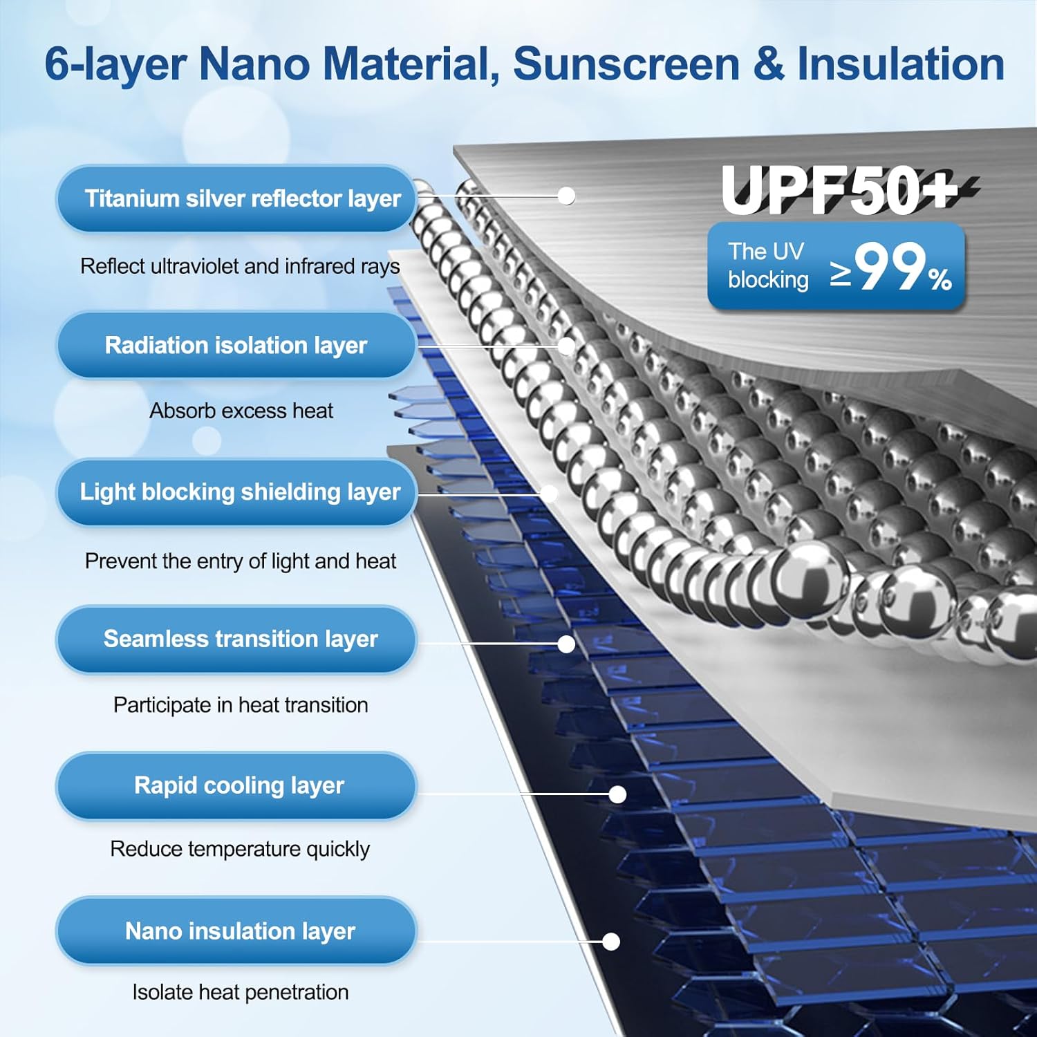 【Tecnología eficiente】La parte delantera del parasol del coche es plateada para reflejar la luz y la parte trasera es negra para aislar el calor. Diseño estructural de 6 capas, que puede bloquear el 99% de los rayos ultravioleta, UPF 50+, proteger eficazmente contra el sol y garantizar una temperatura confortable en el automóvil. ¡En un verano caluroso, es la primera opción para protegerlo a usted y a su automóvil!