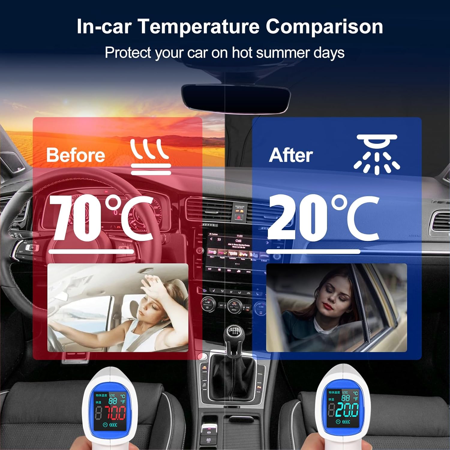 【Protección práctica】Nuestro parasol para parabrisas protege contra los rayos ultravioleta y proporciona aislamiento térmico. No sólo previene daños al interior del automóvil y la generación de gases nocivos debido a las altas temperaturas y la luz solar, sino que también reduce la temperatura dentro del automóvil, ahorra energía y brinda comodidad y espacio privado.