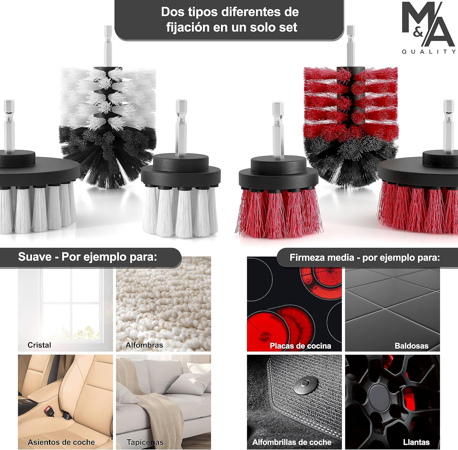 GRAIN BRUSHES: Recommended by car repair shops: There are more than 100 professionals in the sector who use our cordless car upholstery drill brush.