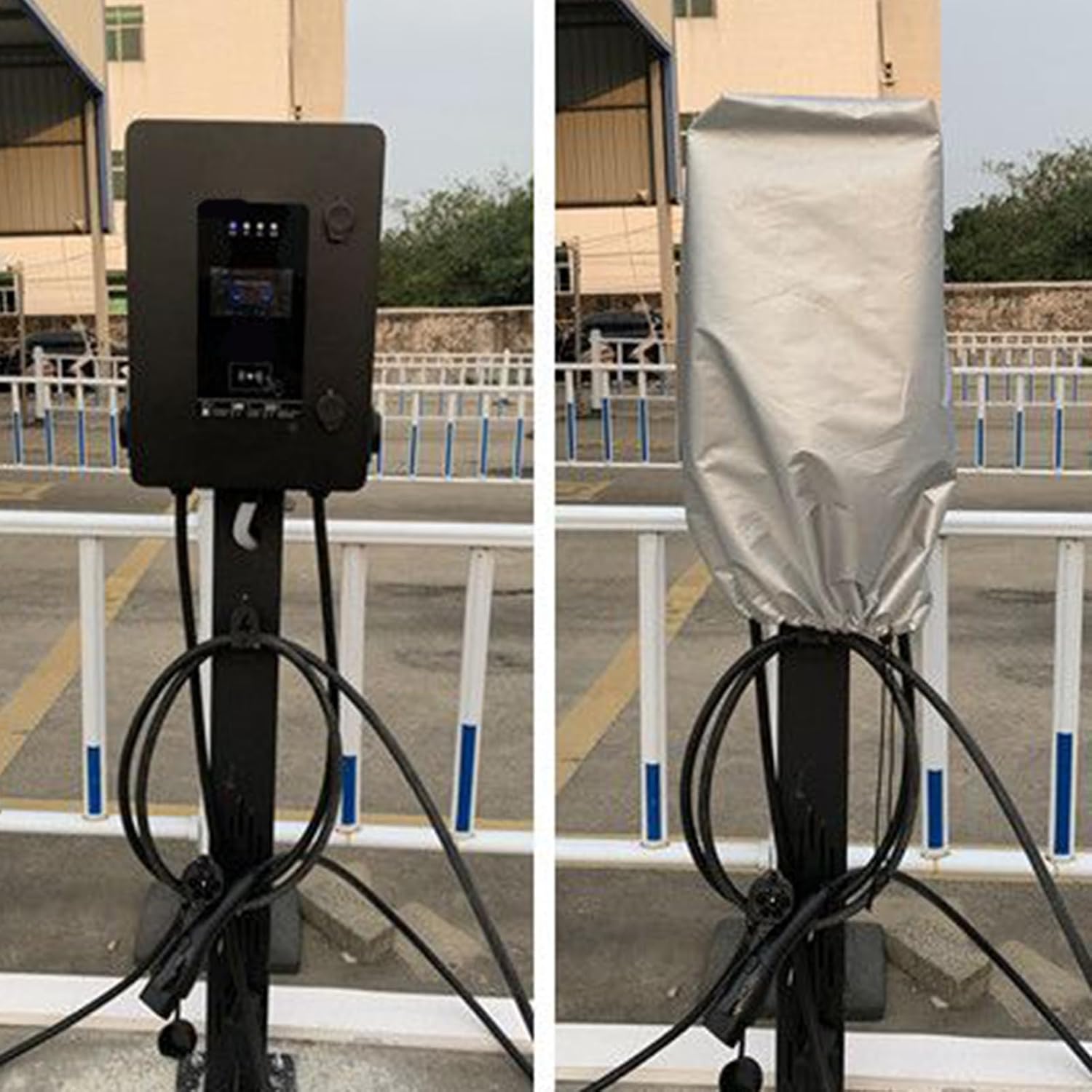 Dos tamaños: Cubierta ajustada con doble opción de tamaño para estaciones de carga, ofrece protección completa de puertos y paneles mejorando la durabilidad sin obstruir puntos de acceso.