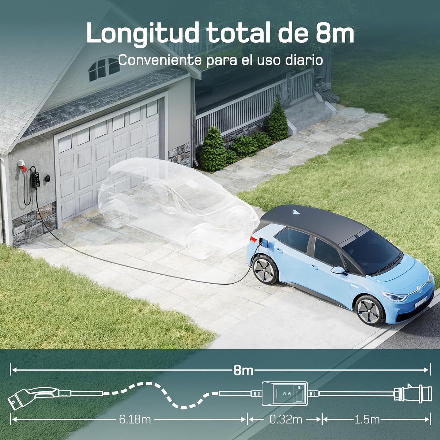 Dé Cargador de Coche Eléctrico 11kW 8 m (6-16A, Trifásico) 11kW Cargador de Vehículo Eléctrico y Estación de Carga de Coche, Cargador de Coche Eléctrico para Modelo Y/3, e-Tron y Otros EV/PHEV
