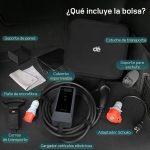 【El paquete incluye】Estación de carga EV 11KW, bolsa impermeable, correa de transporte, paño de microfibra y 3 adaptadores de diferentes especificaciones. Una bolsa estanca para guardar el cable en el maletero. Una correa de transporte para gestión de cables, portabilidad o montaje en pared. Un paño de limpieza en el estuche y una bolsa impermeable para usar en condiciones de lluvia.
