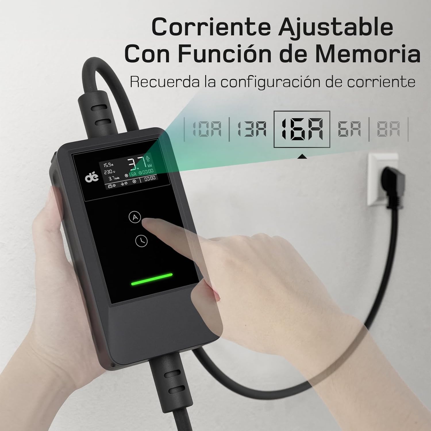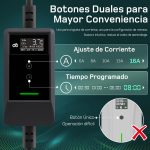 DOS FUNCIONES, DOS BOTONES: el cable tipo 2 ofrece configuraciones actuales de 6 A a 16 A para una carga personalizada con un solo clic. Otro botón permite programar la carga para horas valle (de 0,5 a 8 horas) y muestra el estado de carga en tiempo real a través de la pantalla LCD. Operación fácil y sencilla, con una pantalla clara y completa.