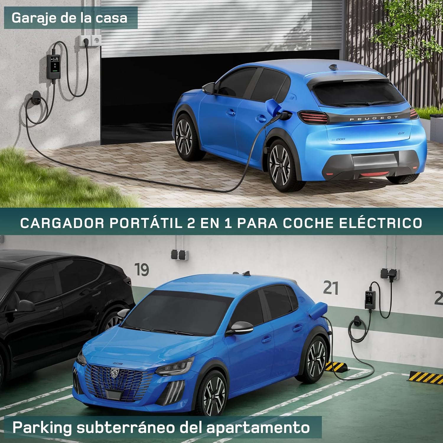 CARGA INSTANTÁNEA, EN CUALQUIER LUGAR: alimenta tu vehículo eléctrico dondequiera que tengas acceso a una toma Schuko. Con una longitud total de 7 metros, llegar a tu plaza de aparcamiento es muy fácil. Disfrute de la comodidad de una carga sin problemas, sin necesidad de instalación.