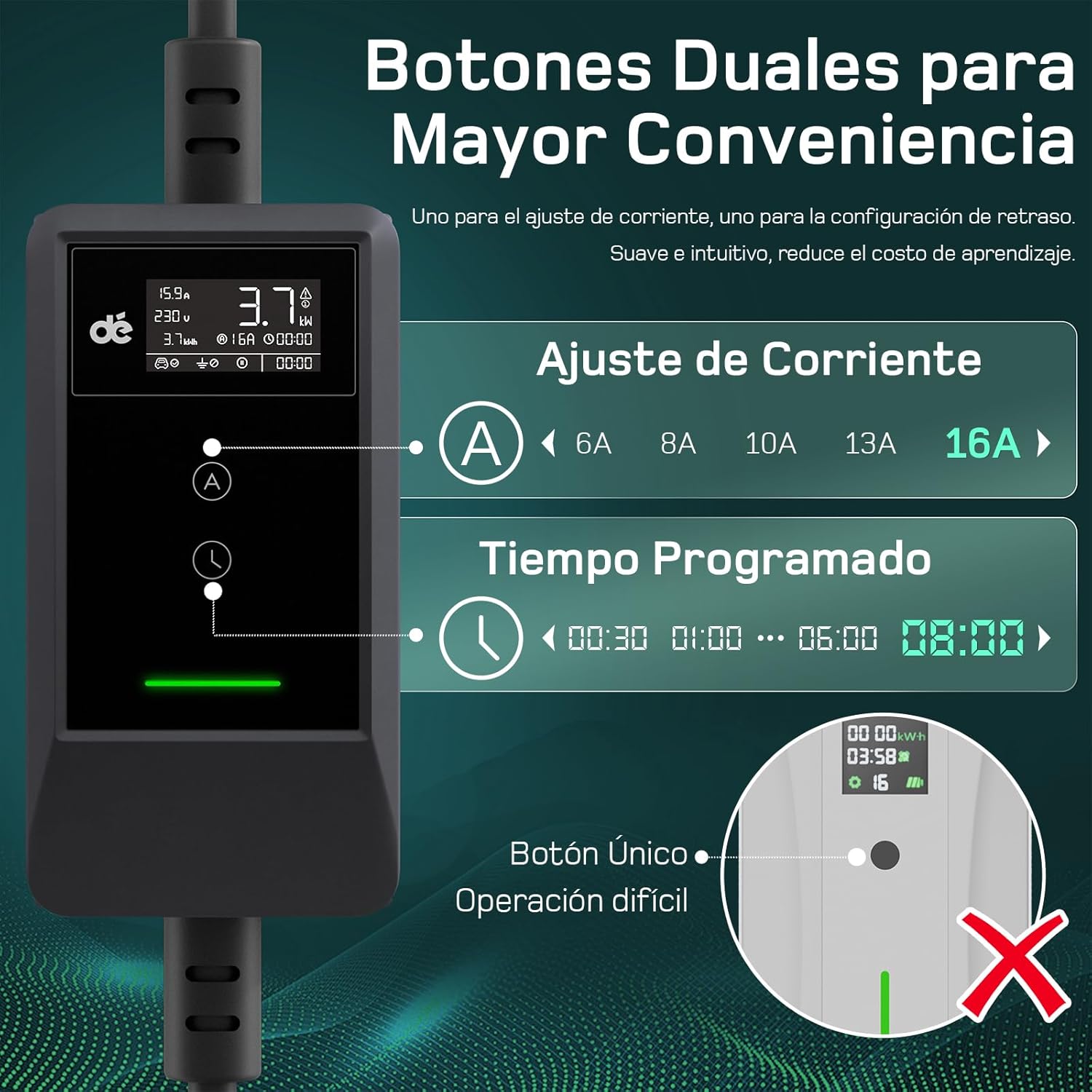 ![dé Electric Car Charger 3.7kW 5.5 m [4.65 m+0.85 m, 6-16A] Portable Electric Vehicle Charger with Wall Bracket, LCD Digital Display, Controllable for Model Y/3, GLC, A250, Q3 and Other EV/PHEV - Image 2](http://accesoriosev.com/wp-content/uploads/2026/02/de-Electric-Car-Charger-3.7kW-5.5-m-4.65-m0.85-m-6-16A-Portable-Electric-Vehicle-Charger-with-Wall-Bracket-LCD-Digital-Display-Controllable-for-Model-Y3-GLC-A250-Q3-and-Other-EVPHEV.jpg)