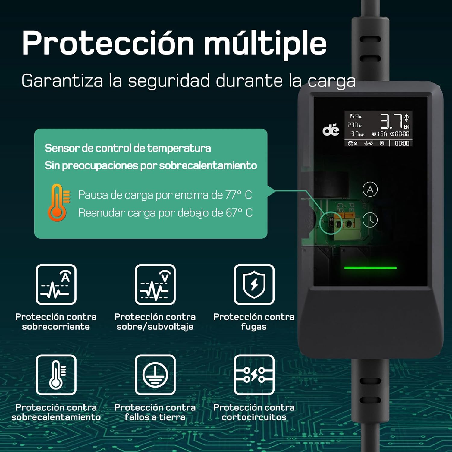 ![dé Electric Car Charger 3.7kW 5.5 m [4.65 m+0.85 m, 6-16A] Portable Electric Vehicle Charger with Wall Bracket, LCD Digital Display, Controllable for Model Y/3, GLC, A250, Q3 and Other EV/PHEV - Image 7](http://accesoriosev.com/wp-content/uploads/2026/02/1771072520_de-Electric-Car-Charger-3.7kW-5.5-m-4.65-m0.85-m-6-16A-Portable-Electric-Vehicle-Charger-with-Wall-Bracket-LCD-Digital-Display-Controllable-for-Model-Y3-GLC-A250-Q3-and-Other-EVPHEV.jpg)