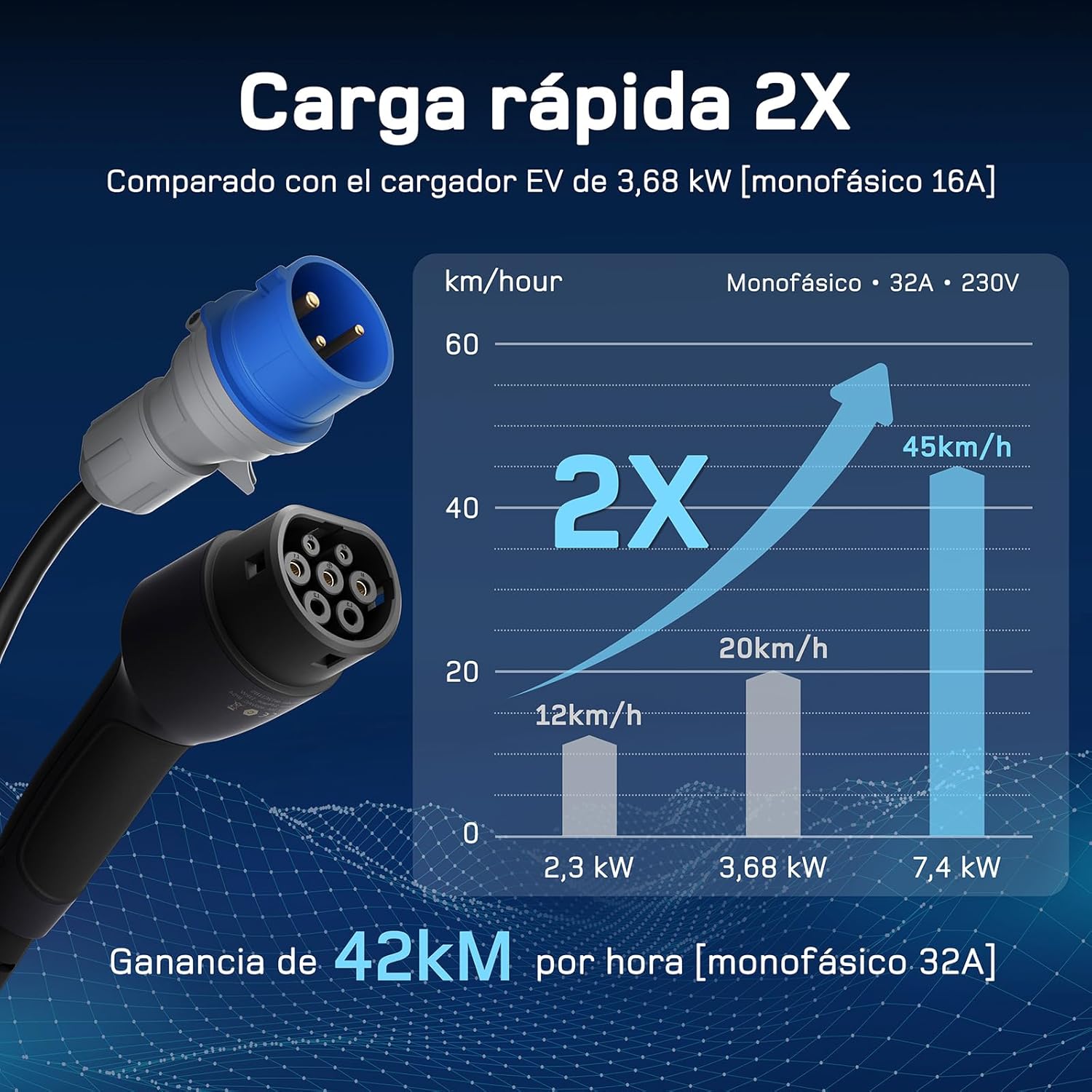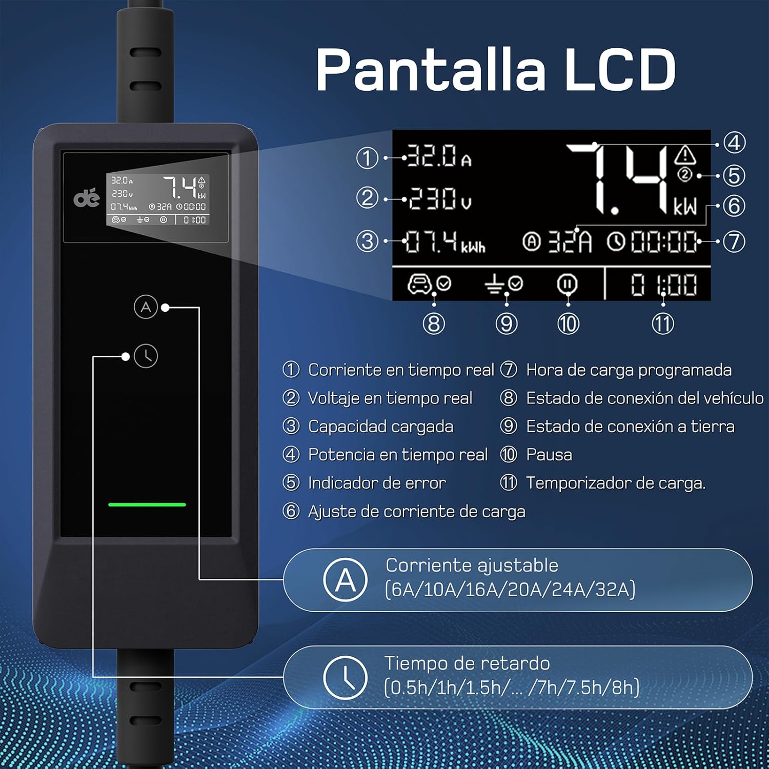 ![dé Electric Car Charger 7.4kW [6 m, 6A-32A, Single-Phase] EV Type 2 of 7 kW 32 A, Electric Vehicle 32a for Model Y/3, GLC, Q3, Kuga, iX1, EX30, Niro, Ioniq 5, EQA and Other BEV/PHEV - Image 5](http://accesoriosev.com/wp-content/uploads/2026/02/1771072530_de-Electric-Car-Charger-7.4kW-6-m-6A-32A-Single-Phase-EV-Type-2-of-7-kW-32-A-Electric-Vehicle-32a-for-Model-Y3-GLC-Q3-Kuga-iX1-EX30-Niro-Ioniq-5-EQA-and-Other-BEVPHEV.jpg)