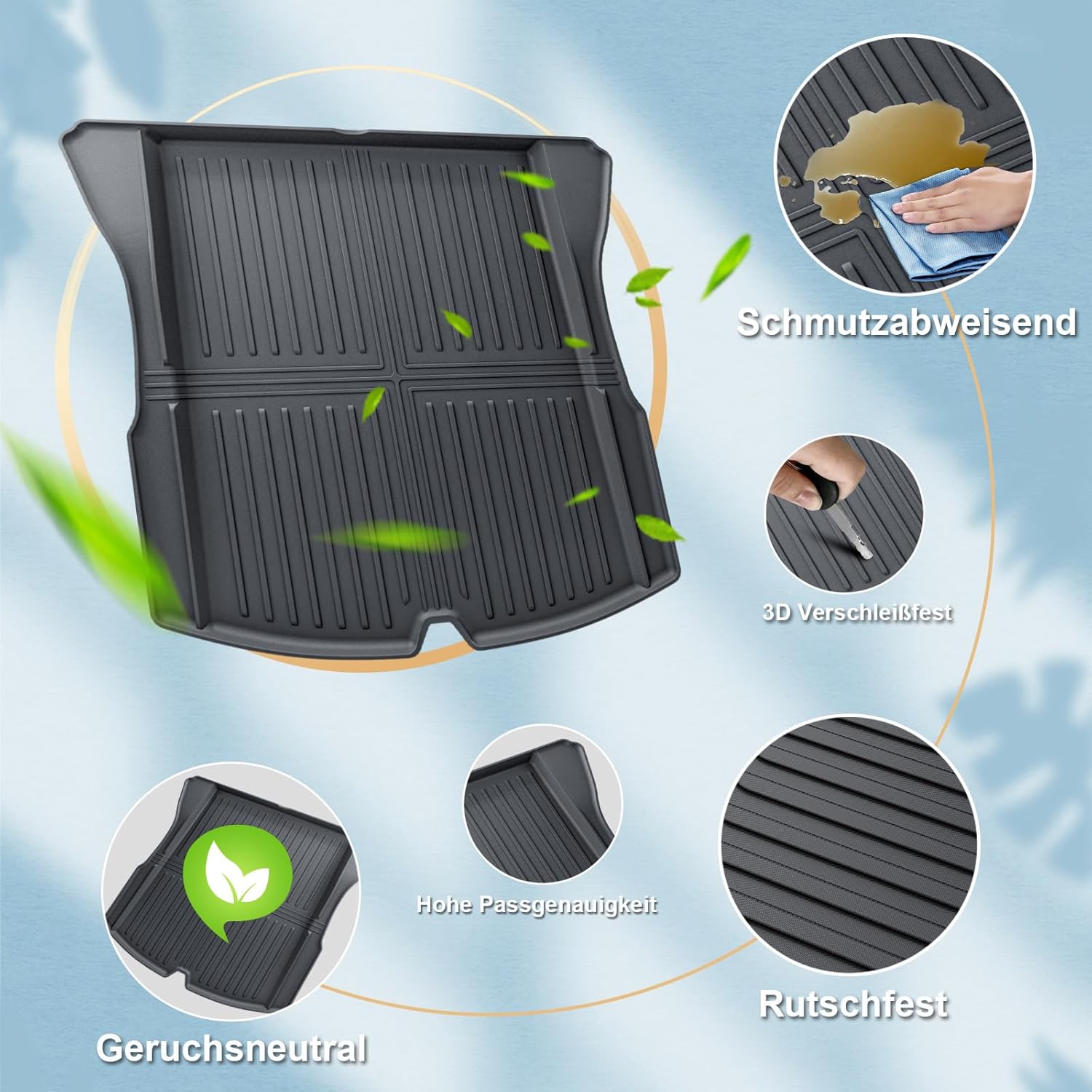 Waterproof with raised edge and non-slip design: thanks to its extra high edge and waterproof design, our boot mat offers optimal protection against dirt, sand, stones and other foreign objects, thus prolonging the life of your vehicle. The non-slip backing ensures safe handling, even with heavy objects moving during bumpy journeys.