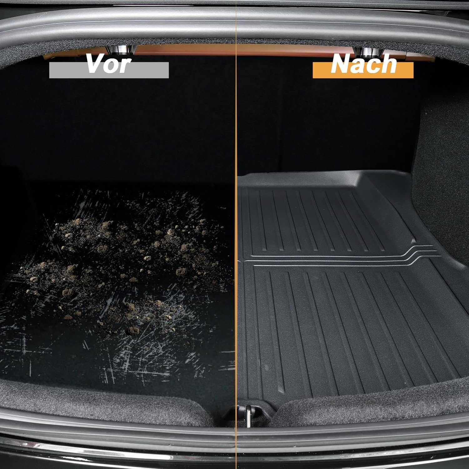 【Tailored Bottom Trunk Mat for Tesla Model 3】Our anti-slip trunk mat is manufactured using 3D scanning and printing technology, making it a unique piece with a perfect fit. (This model is a tailored boot mat. Compatible with Tesla Model 3 2024-2025).