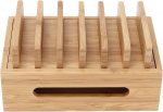 Estación de carga de madera, organizador multidispositivo de 6 puertos, caja de almacenamiento múltiple, estación de acoplamiento para teléfonos móviles para tabletas