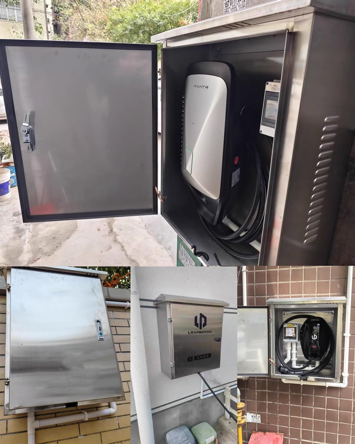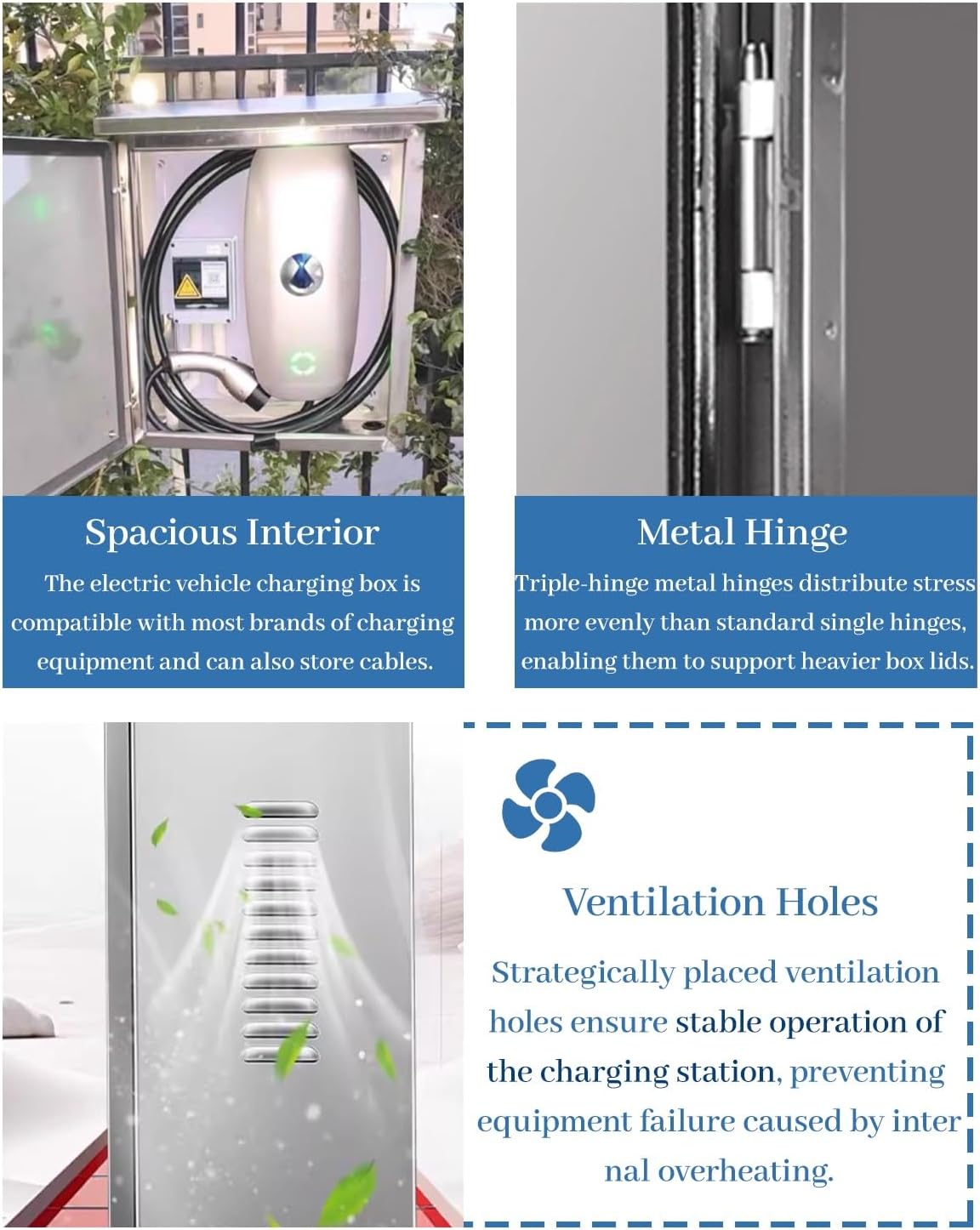 【Acero inoxidable de 0,8 mm】 Esta carcasa para cargador de vehículos eléctricos para exteriores está hecha de metal, lo que elimina la necesidad de repintar periódicamente para evitar la oxidación, el envejecimiento y las grietas, lo que prolonga enormemente su durabilidad.