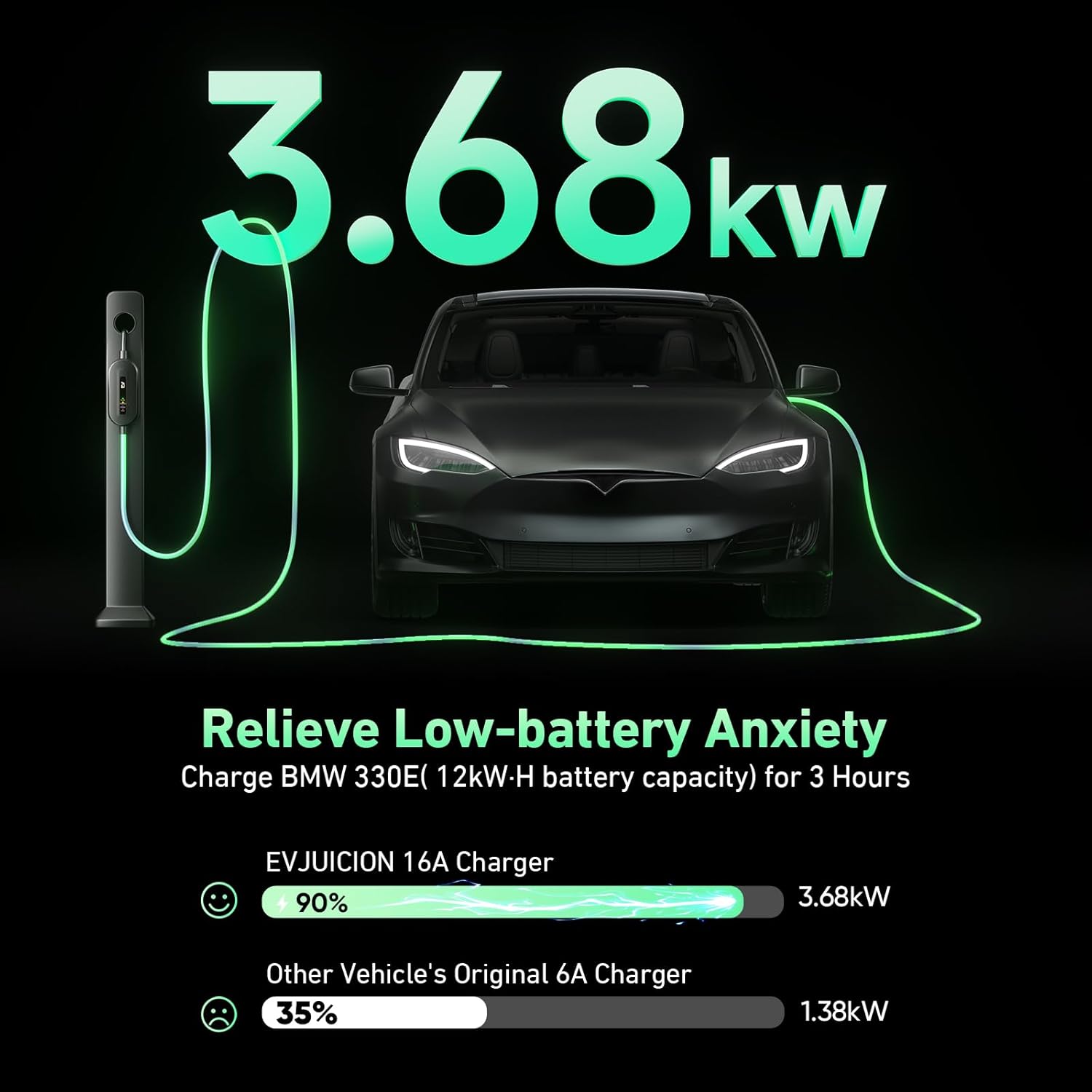 【CARGA EFICIENTE DE 3,68 kW】El cargador para coche eléctrico EVJUICION tipo 2 proporciona 16 amperios y una potencia de salida de hasta 3,68 kW (230 V x 16 A). El cable de carga de alto rendimiento combina cables de cobre sin oxígeno y contactos plateados para una conductividad óptima para una carga más rápida y estable con la máxima eficiencia energética.