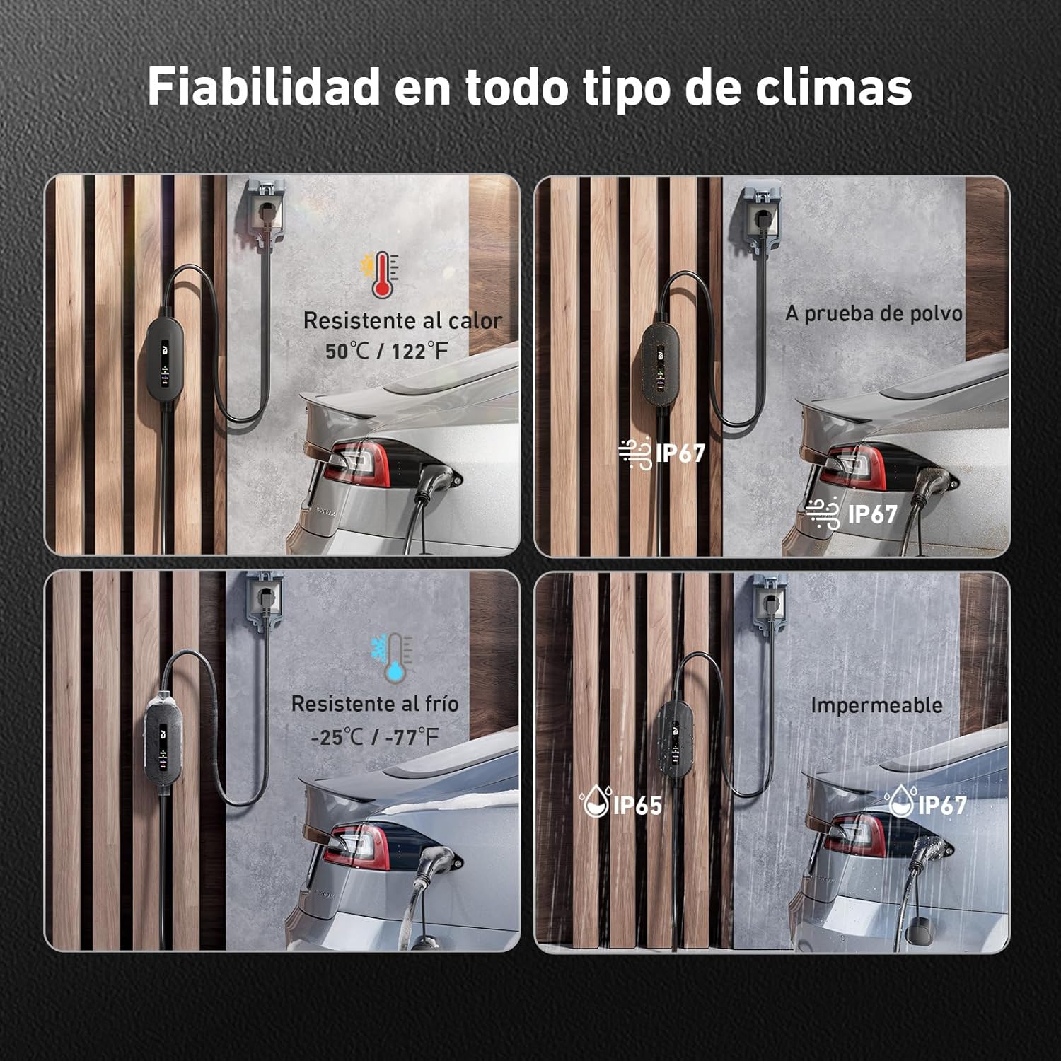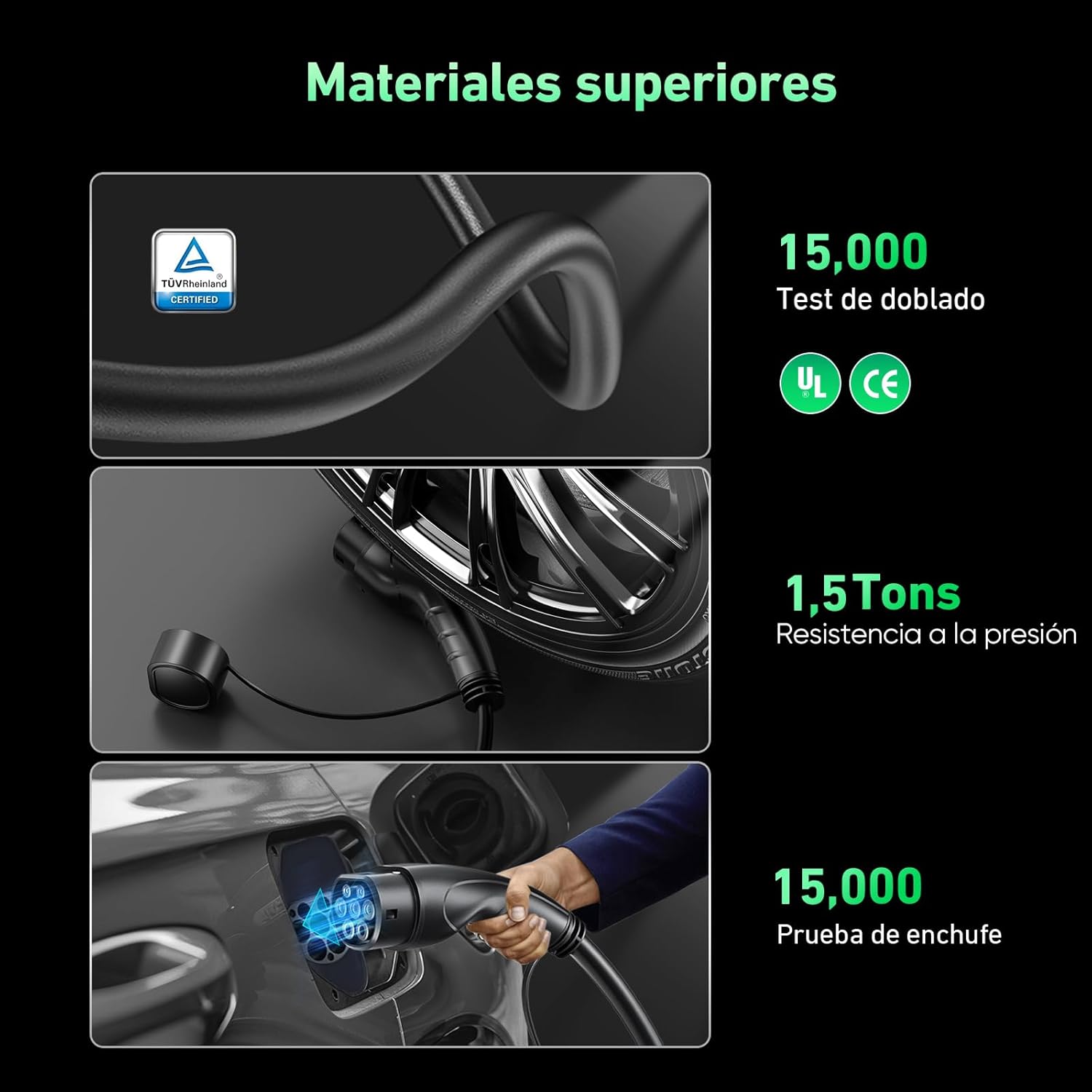 【CABLE EXCELENTE】 El cable cargador de coche eléctrico de TPU ha superado 15.000 pruebas de flexión y el conector hembra tipo 2 superó 15.000 pruebas de inserción. La temperatura de funcionamiento es de -20 ℃ a 50 ℃. El cable permanece flexible en invierno. No me preocupa la exposición al sol abrasador en verano. Los cables premium son resistentes a la abrasión y a los enredos. Ideal para uso frecuente y prolongado.