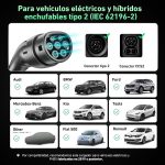 【AMPLIA COMPATIBILIDAD】El cargador para vehículos eléctricos Tipo 2 con enchufe Schuko es compatible con vehículos eléctricos BEV y PHEV Tipo 2 (IEC 62196) en Europa. Incluye 3008/508/308 PHEV, C5X, DS7, GLA, Q3, X3, ID.3, ID.4, ID.5, e-Golf, e-Up, Model Y, Model 3, Spring, Kona, Ioniq 5, e-tron, i3, i4 y otros vehículos eléctricos/híbridos enchufables.