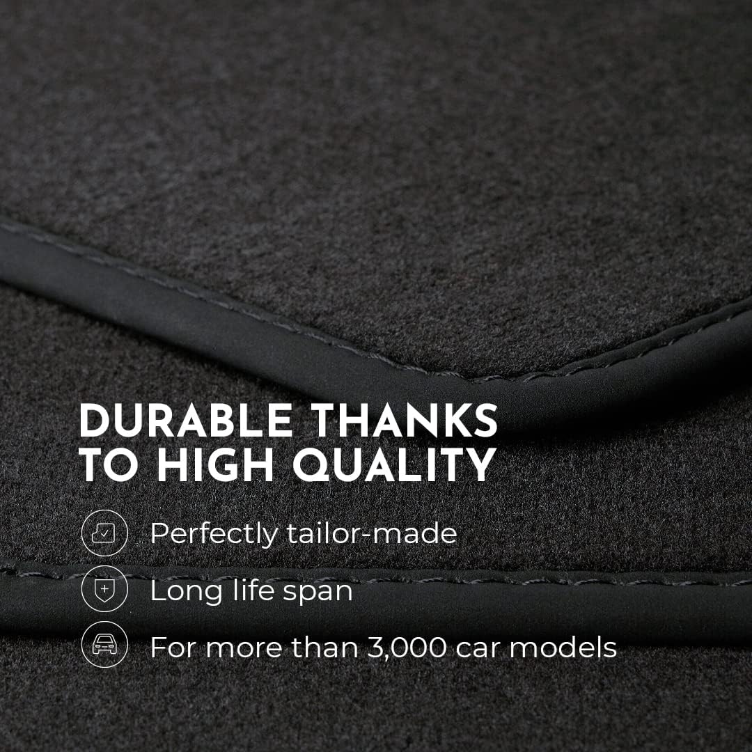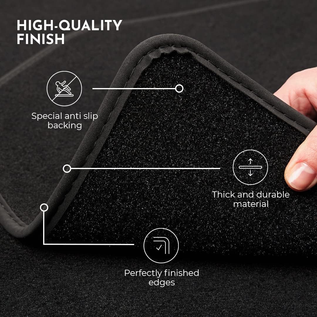 ONLY THE BEST FOR YOUR CAR – Our mats are measured using modern 3D laser scanning technology, ensuring a perfect fit. The mats come with the original fixing system and feature a non-slip backing for extra grip and safety. Each mat is professionally finished with a high quality trim for a sleek look that fits perfectly with your car.