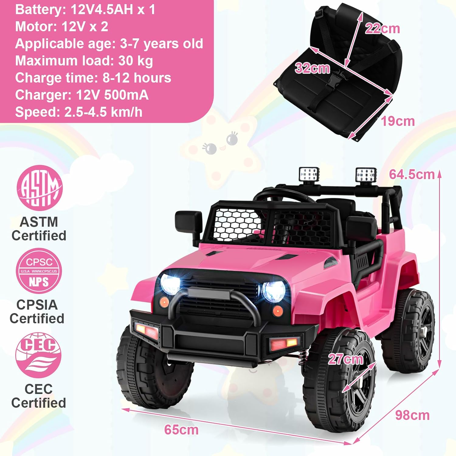 Be the first to review “GOPLUS Coche eléctrico para niños de 12 V con mando a distancia de 2,4 G, vehículo para niños con USB, música y MP3, Jeep Auto con faros LED y bocina, 2,5-4,5 km/h, para niños a partir de 3 años (rosa)” Cancel reply