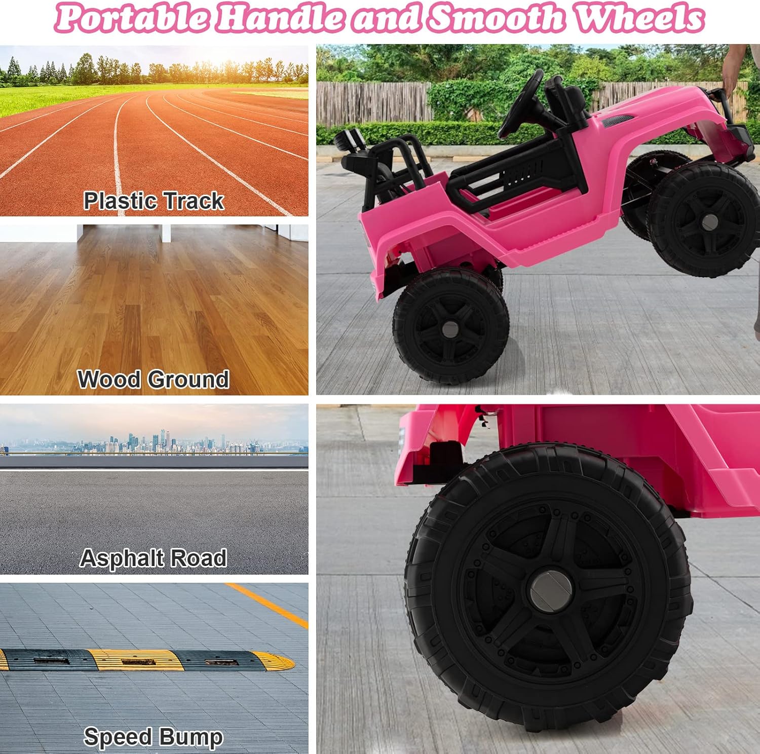 PARA SUPERFICIES DE SUELO VERSÁTILES: con un motor dual de 12 V y velocidades de 2,5 a 4,5 km/h, este coche eléctrico se adapta a cualquier tipo de superficie, desde hormigón hasta ladrillo. Las cuatro ruedas resistentes y antideslizantes y la eficiente suspensión en las ruedas delanteras y traseras brindan una experiencia de conducción cómoda y estable sin vibraciones molestas.