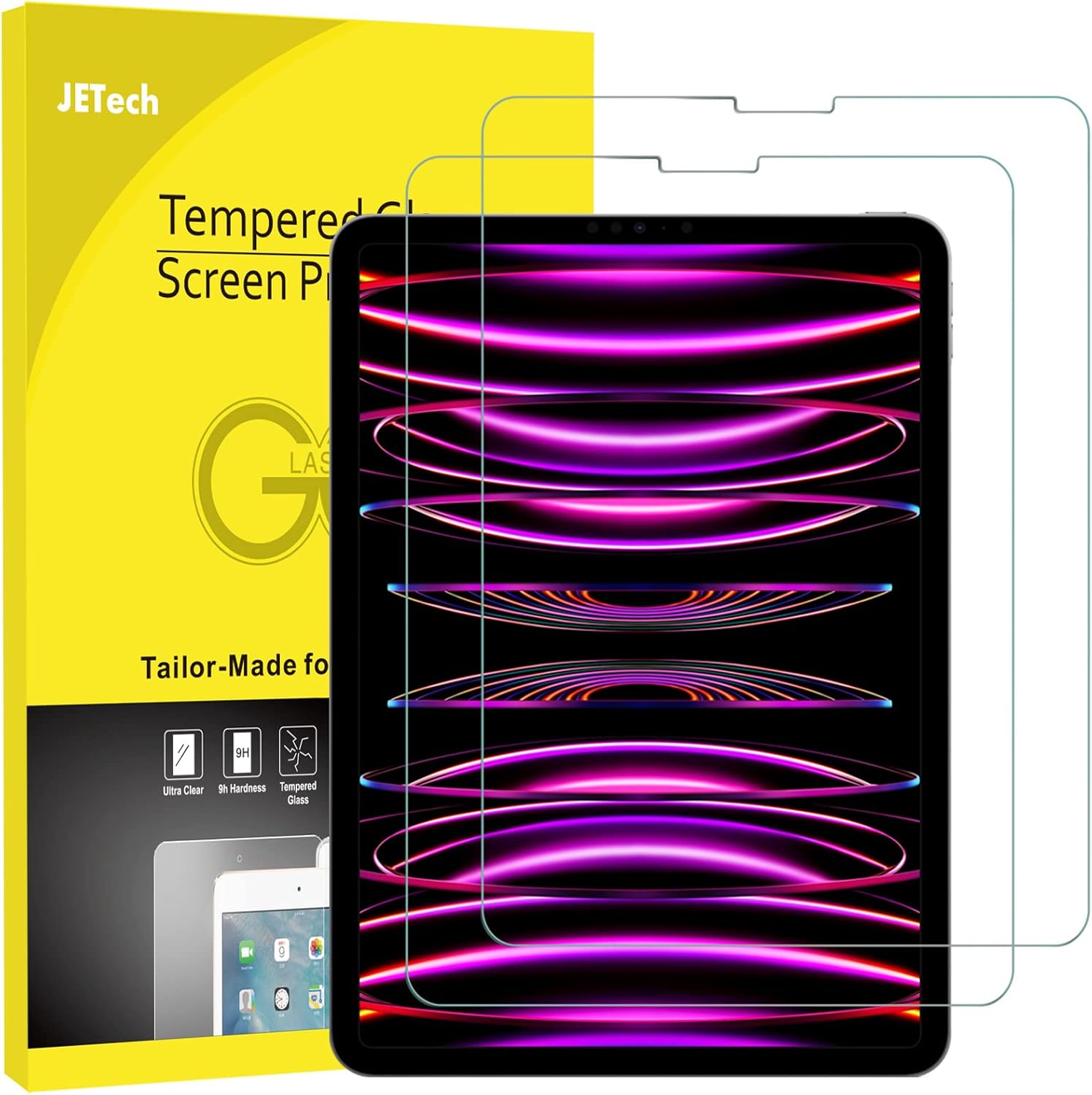 JETech Screen Protector for iPad Air 5/4 10.9 Inch, iPad Pro 11 Inch (2022/2021/2020/2018 Model), Tempered Glass, HD Clear, 2-Pack