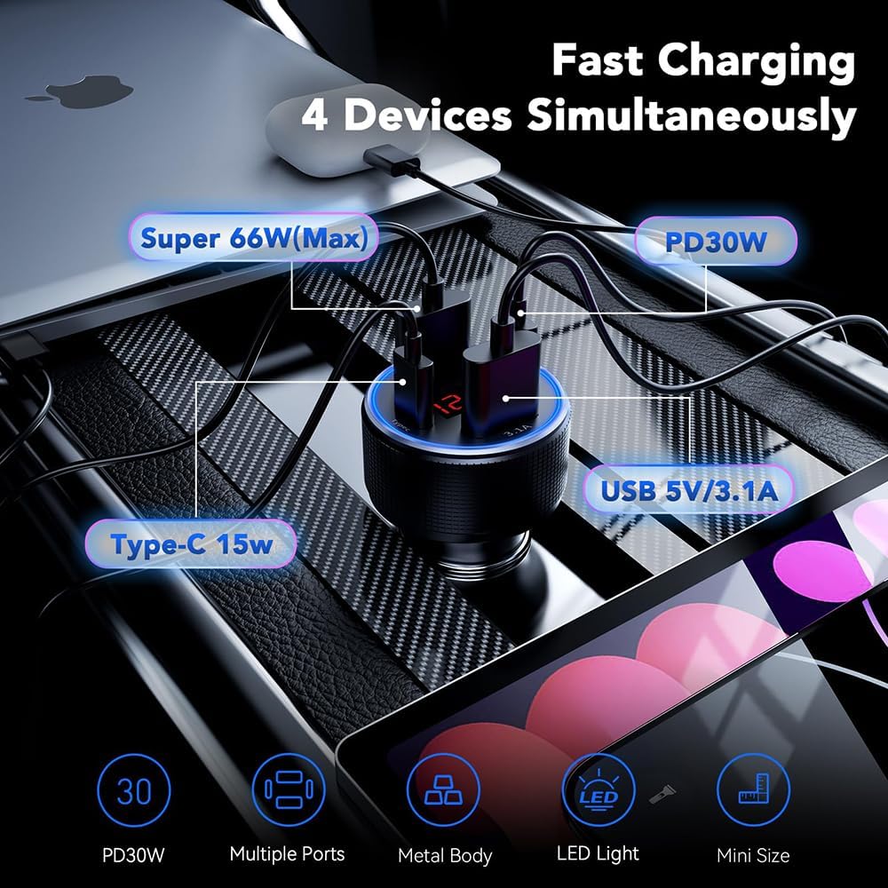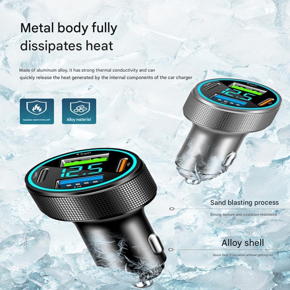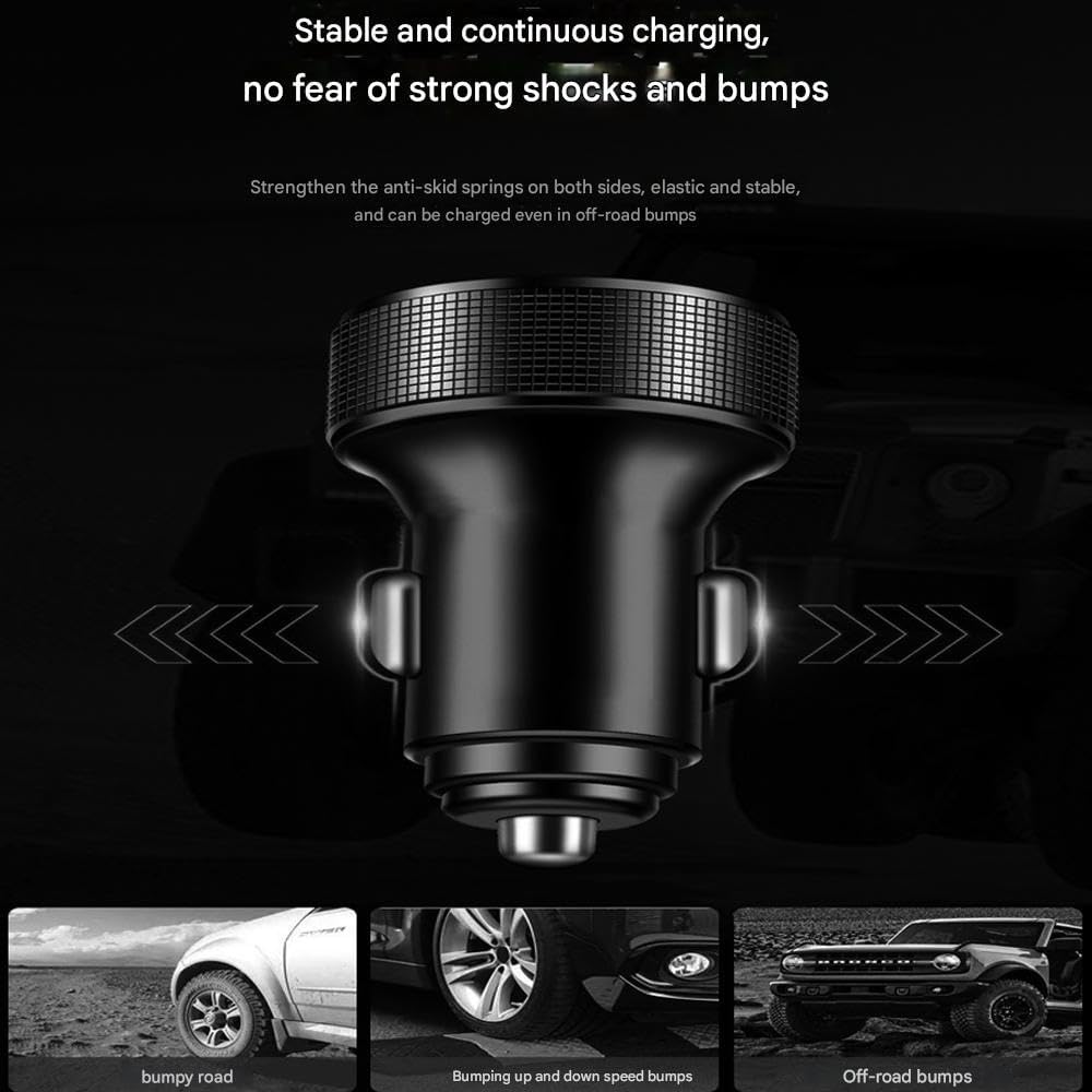 【Material】Este cargador de coche está fabricado en aluminio y es muy resistente.