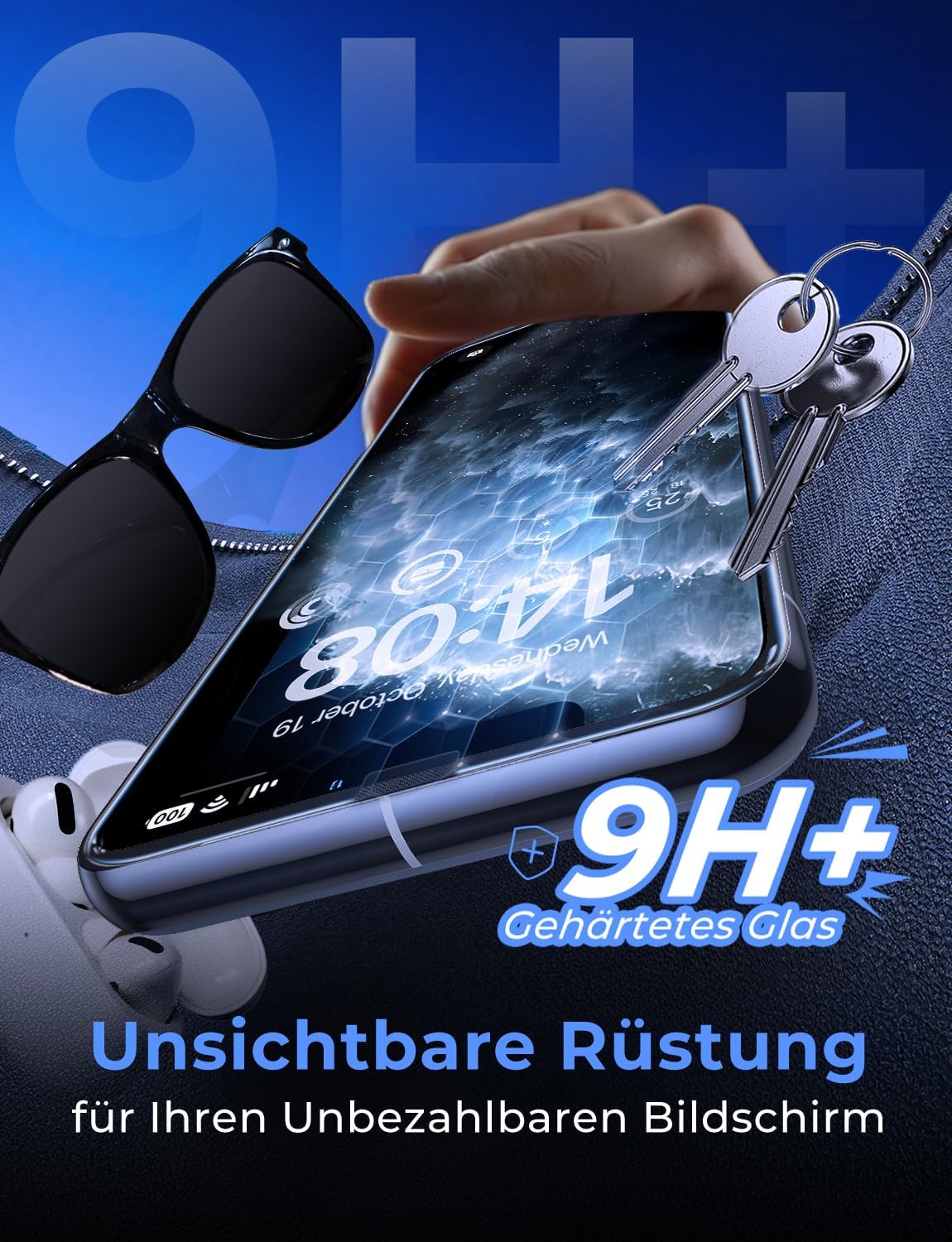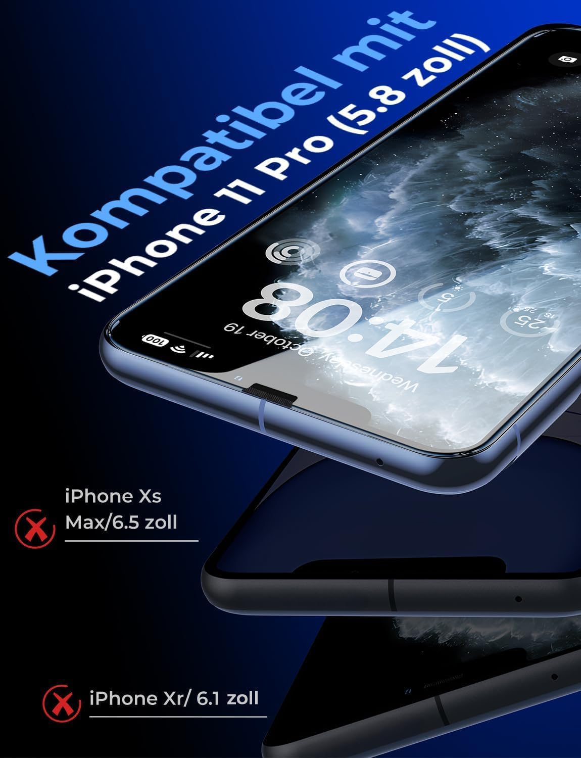 [Quality Materials] Our iPhone 11 Pro screen protector is made of tempered glass with 9H hardness, which is 3 times stronger than ordinary PET screen protector, and can effectively protect your screen from bumps and scratches.