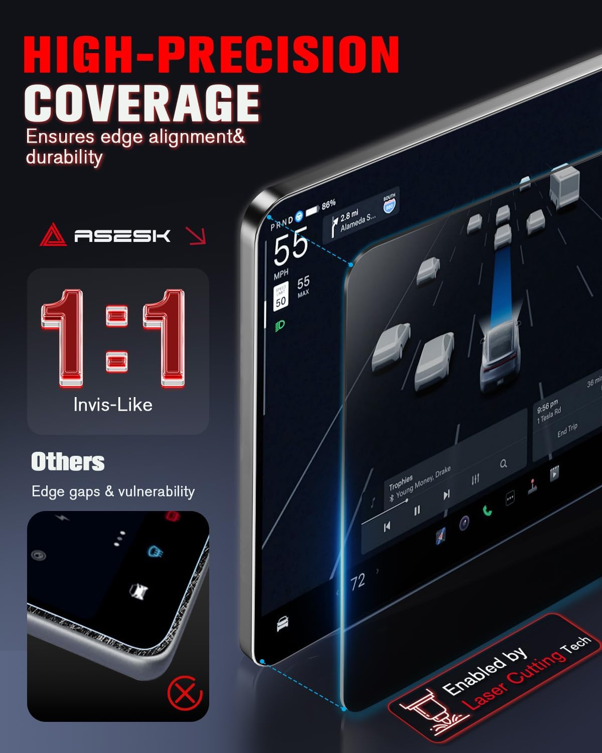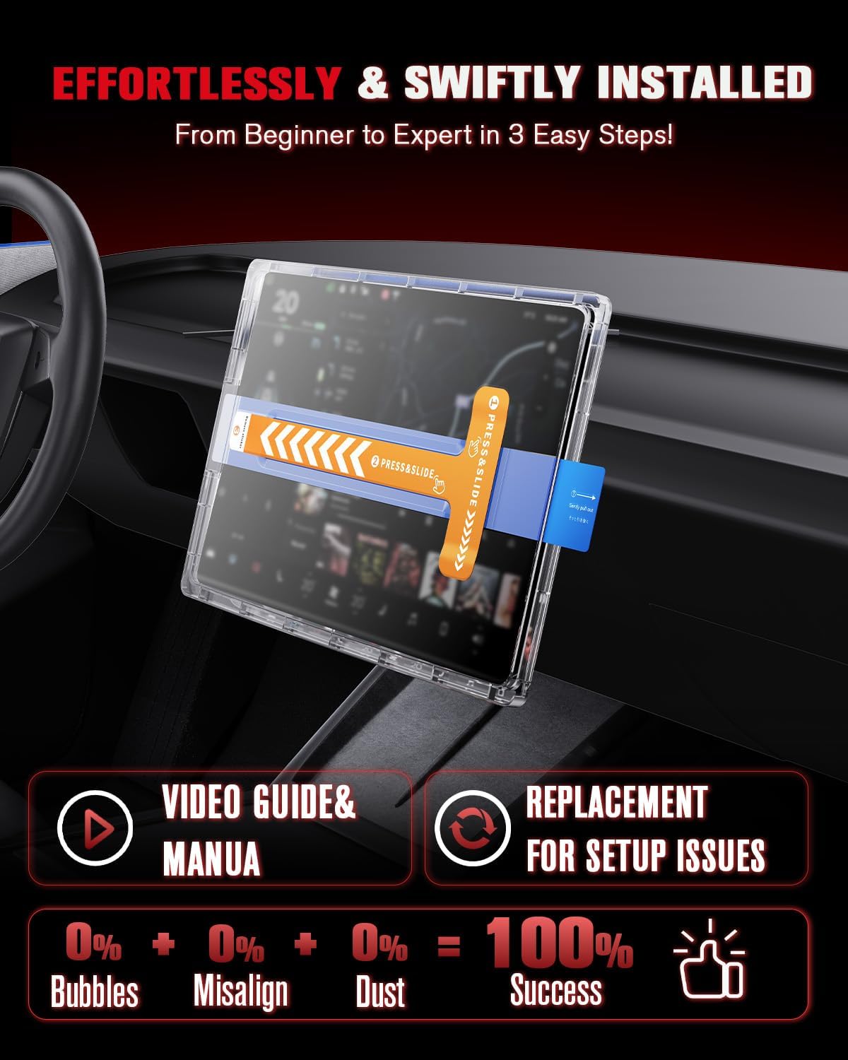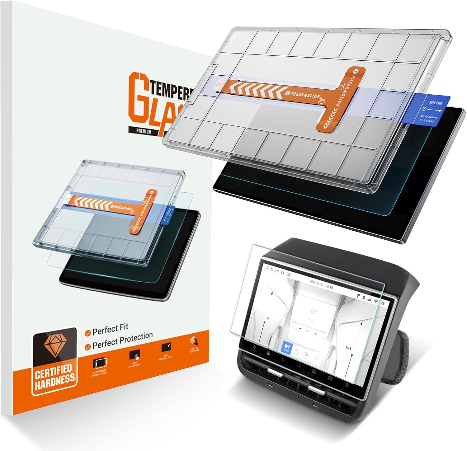 Compatible with Tesla Model Y juniper 2025 2026 and Tesla Model 3 Highland (2024-2026) ASZSK Easy Fit Screen Protector. E, made of aerospace quality glass, the same material used in spacecraft. Scratch resistance is second to none, and in more than 60,000 packages sold worldwide not a single case of broken screen has been reported.