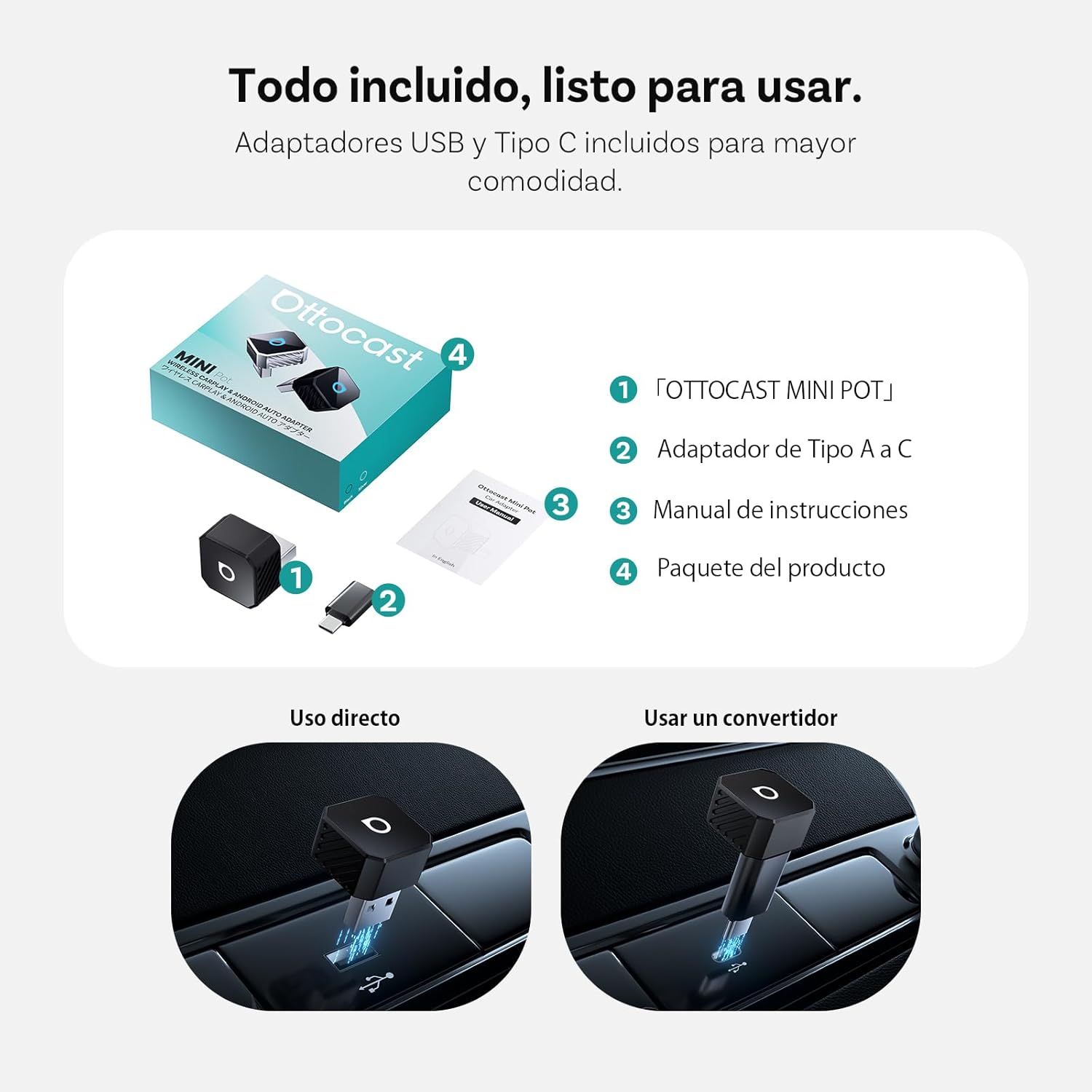 【WIRELESS FREEDOM – GOODBYE TANGLED CABLES!】Tired of plugging and unplugging your phone every time you get in the car? The 2025 OTTOCAST Mini Pot(Mini Cube) turns your wired CarPlay/Android Auto wireless instantly. Includes USB-A to C adapter: plug and play, no complicated setups. Compatible with iPhone (iOS 10+) and Android (11+) for a more comfortable ride from day one.