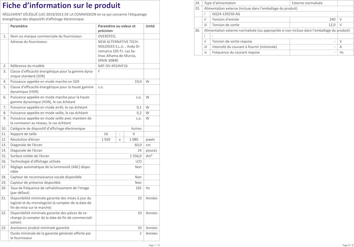 Item model number : NAT-OV-KR24VF16