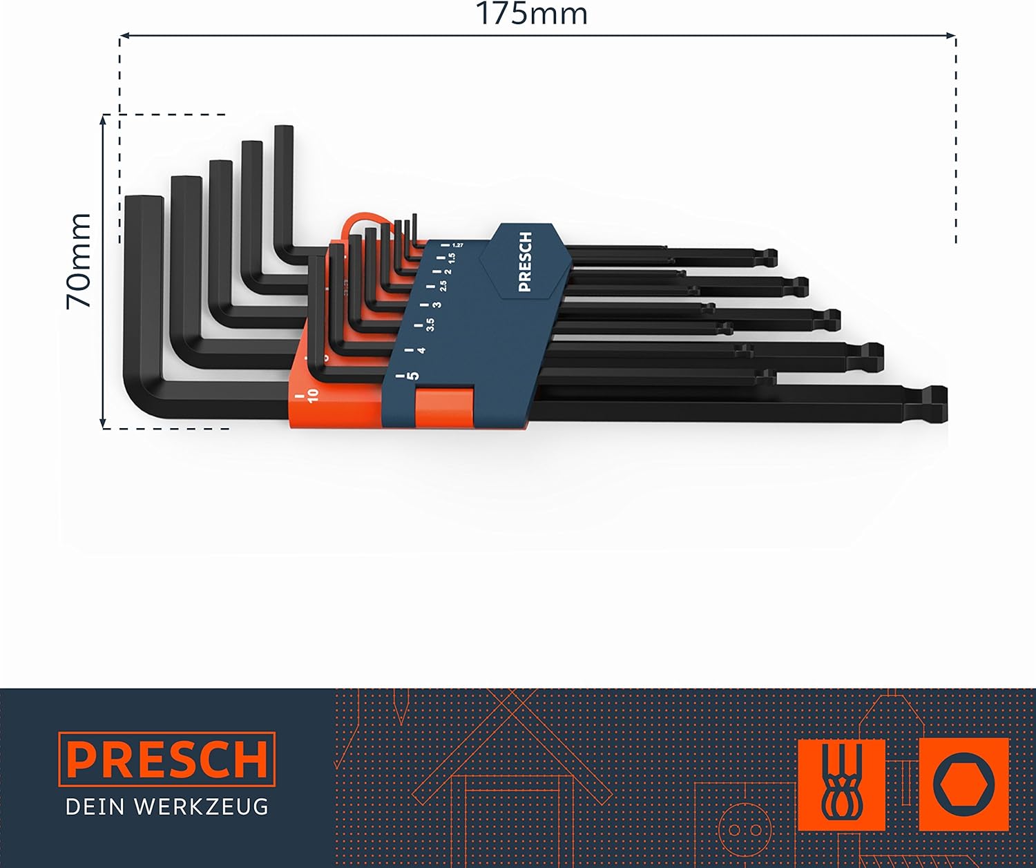 Presch – 13 Pcs Ball Head Hex Allen Key Set, Professional HX Allen Wrench Set, Small and Compact with Holder
